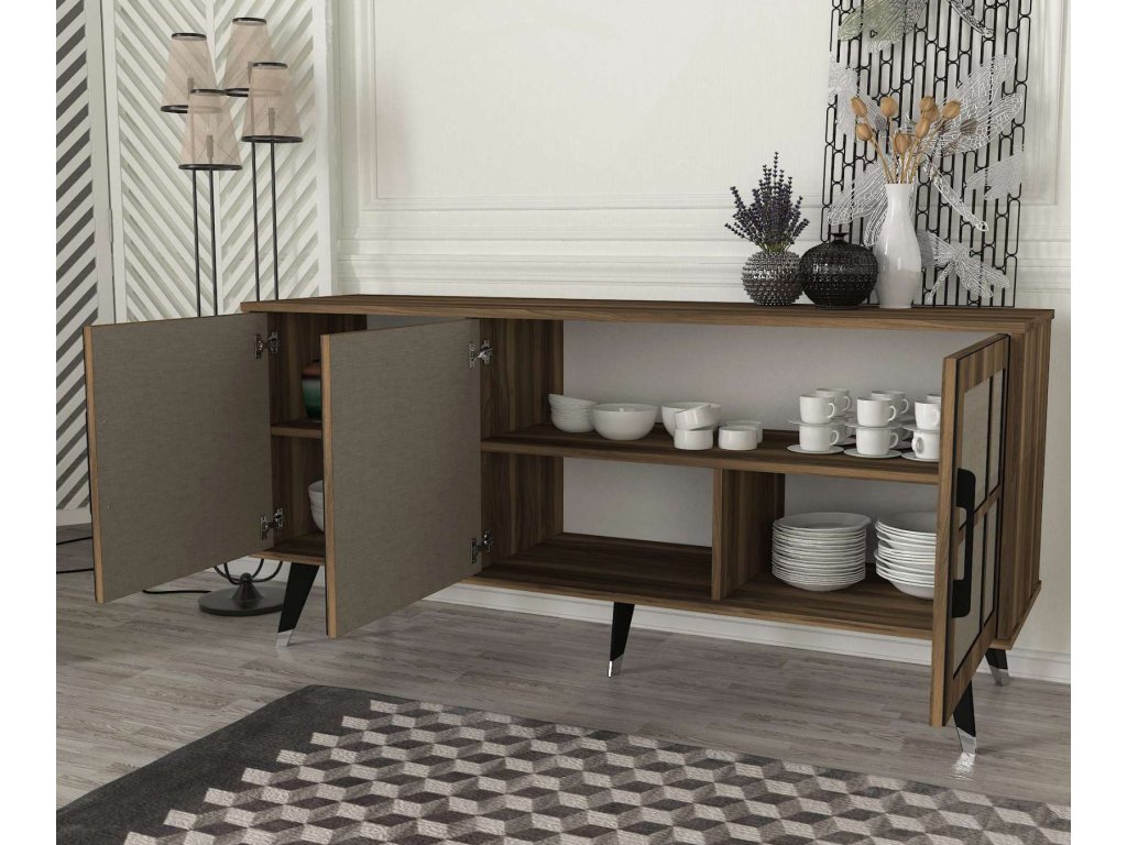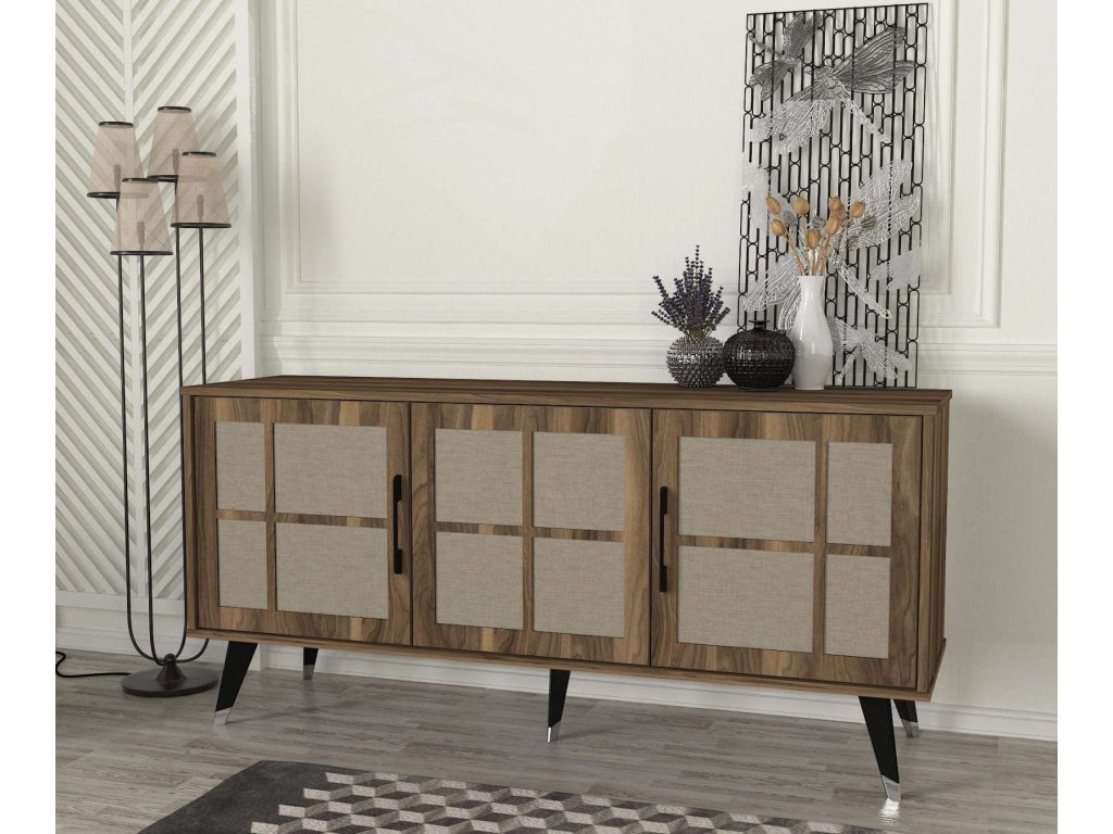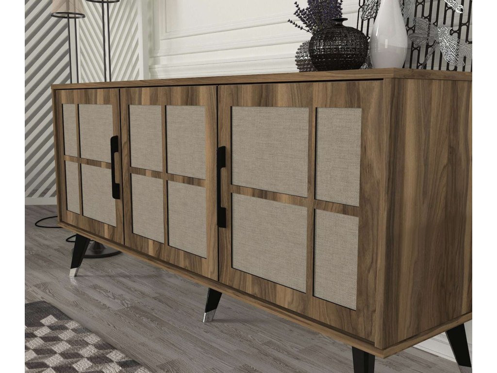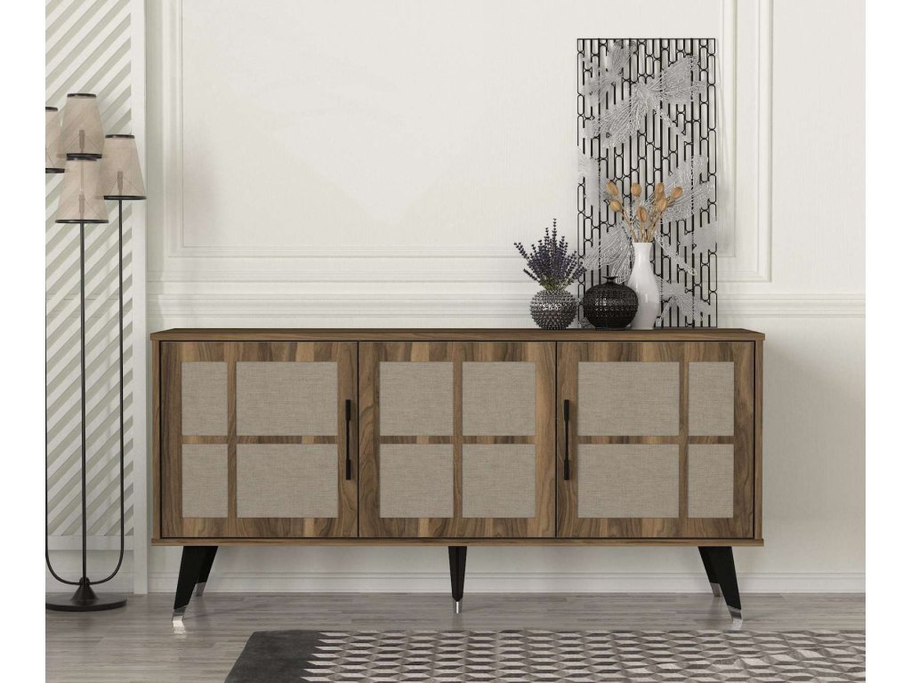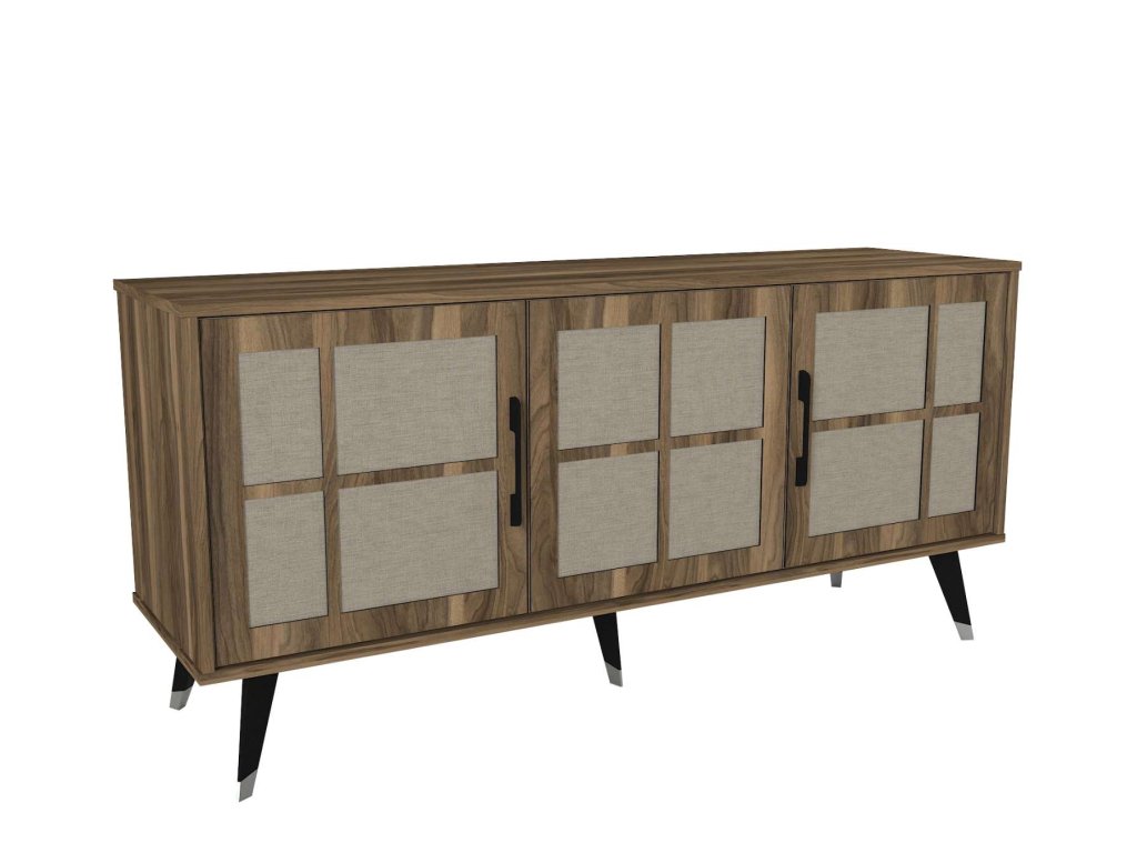 Komoda COTOURE je vyrobená z kvalitného LTD materiálu s hrúbkou 18 mm, čo zaisťuje jej pevnosť a dlhú životnosť. Elegantná kombinácia orechového dekoru a textilného vzhľadu dodáva komode moderný a sofistikovaný vzhľad, ktorý sa hodí do akéhokoľvek interiéru. Komoda je vybavená troma dvierkami, ktoré poskytujú dostatok úložného priestoru pre vaše potreby.