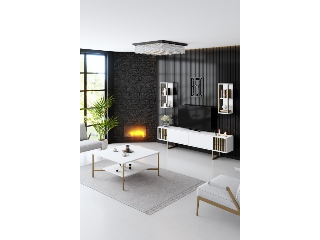 Luxusná obývacia stena AURUM, biela / čierna