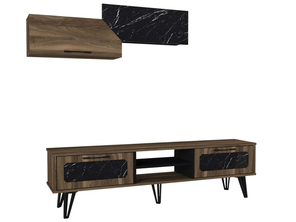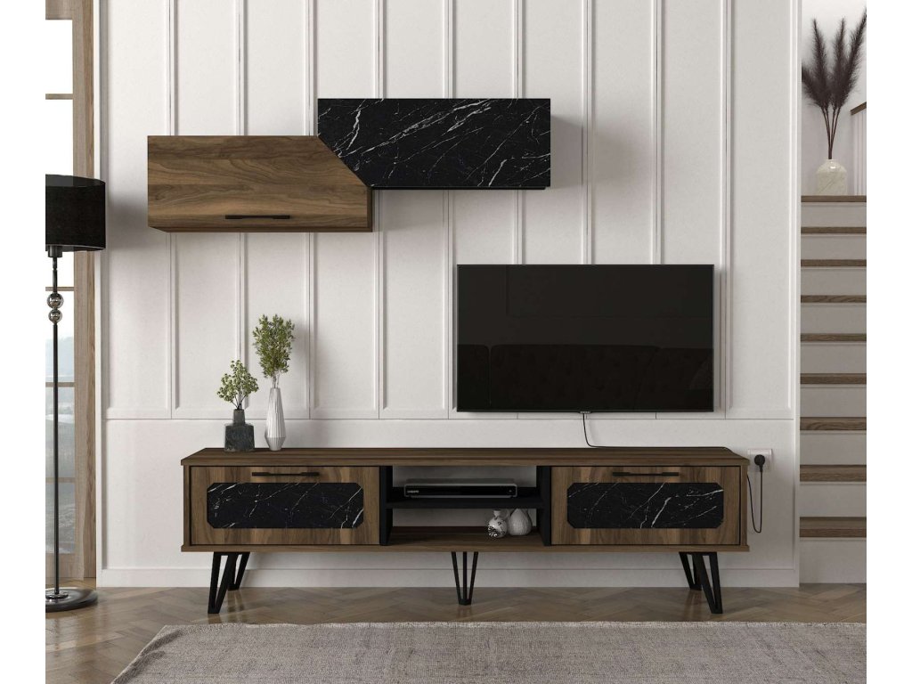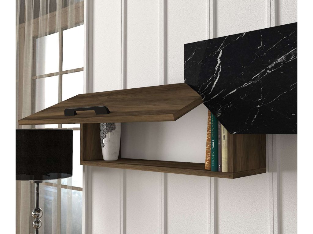 Luxusná obývacia stena RAMPART, orech/čierny mramor