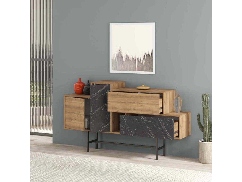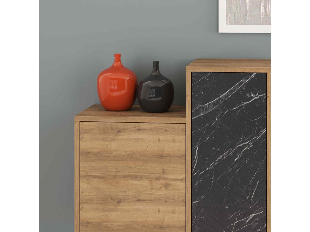 - Materiál: Prekrásny kombinovaný melamín, VT laminát a kov prinášajú do vášho domova trvanlivosť a špičkový dizajn.