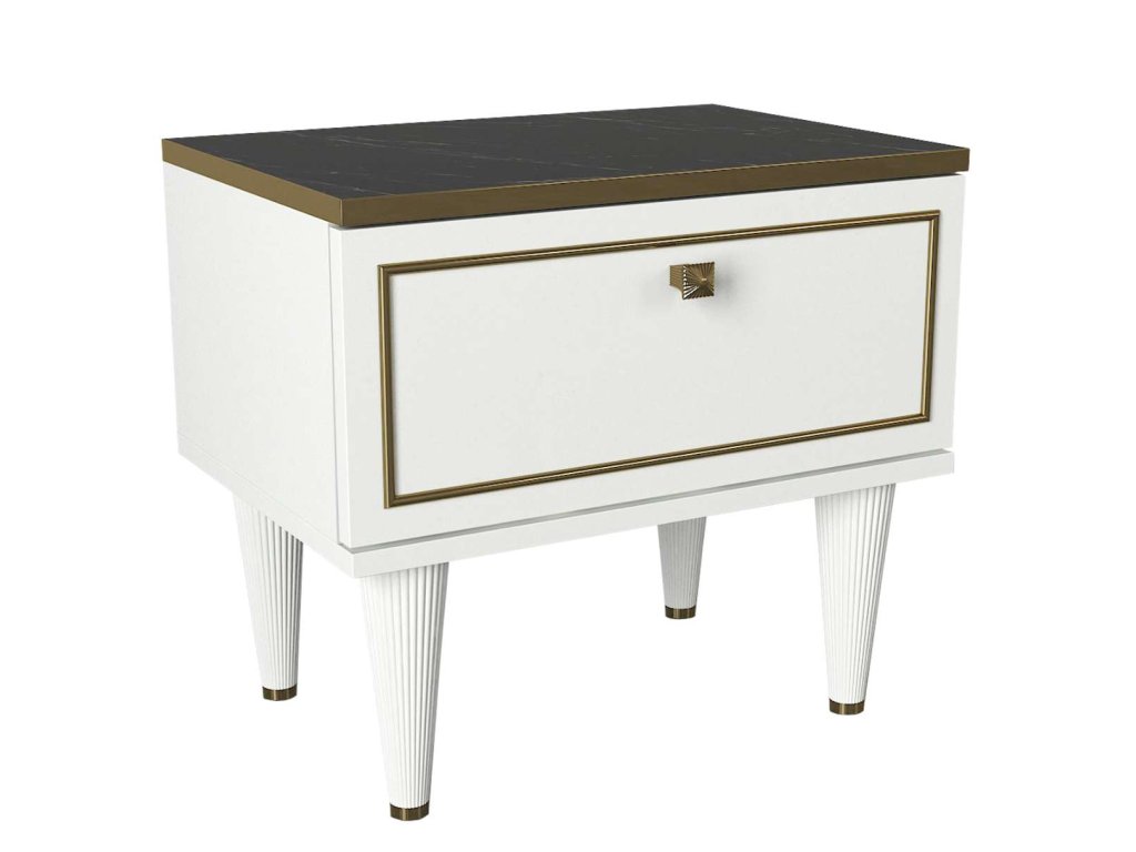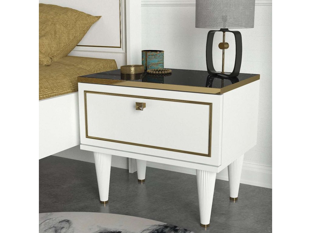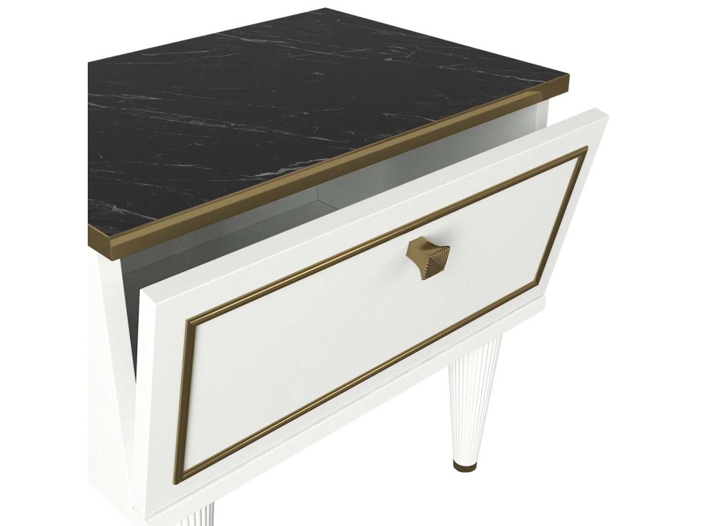 Luxusný nočný stolík RAVEN, biela/čierny mramor