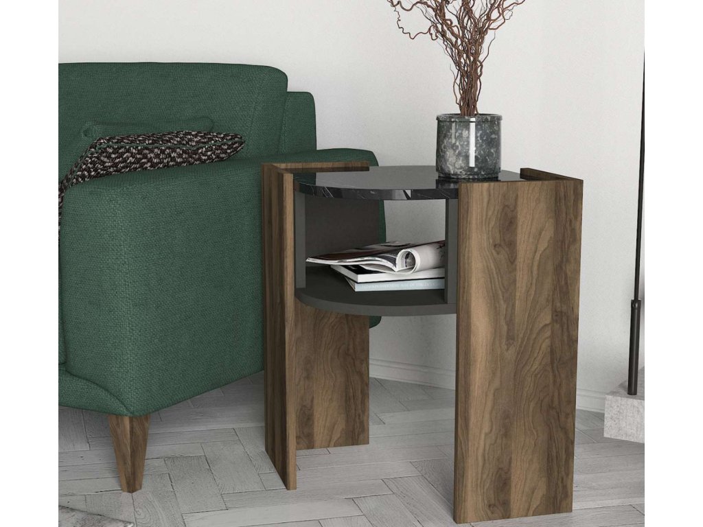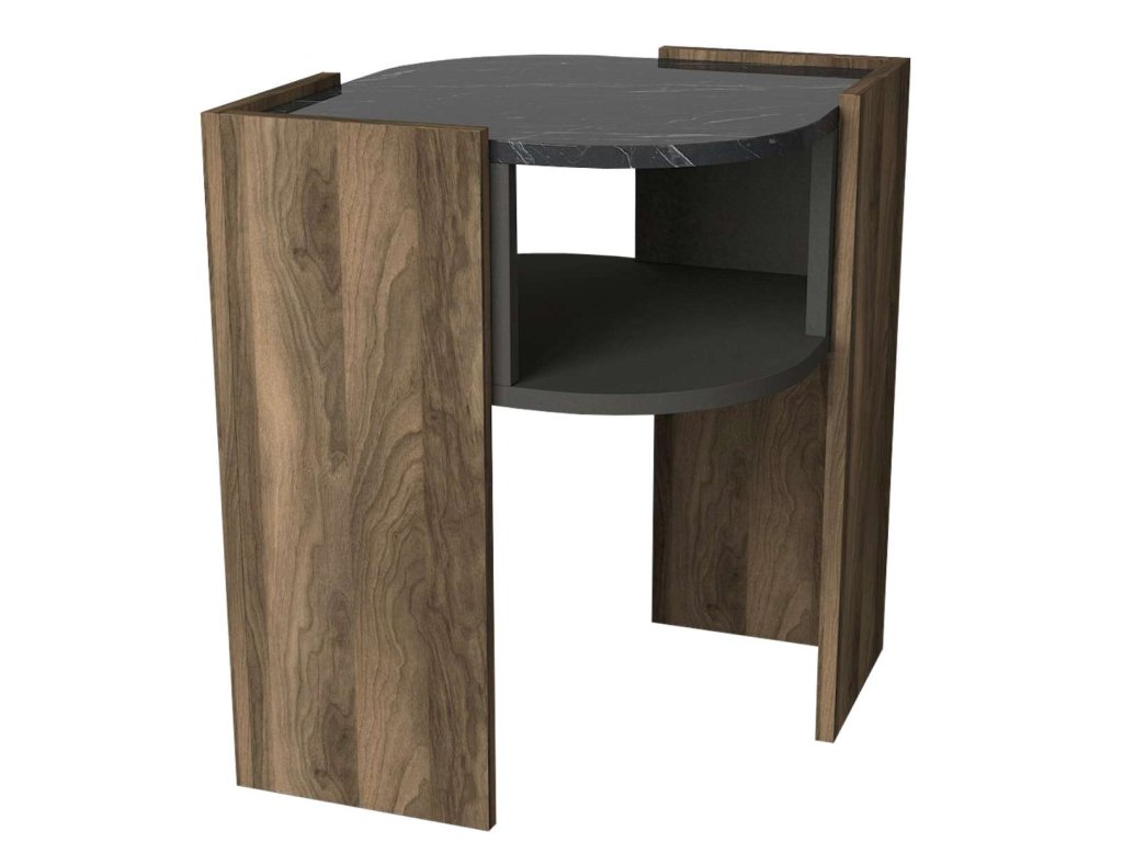 Predstavujeme vám MABEL - elegantný a luxusný príručný stolík, ktorý je dokonalým doplnkom pre vašu obývaciu izbu. Tento stolík je vyrobený z kvalitného LTD materiálu a vyniká kombináciou orecha a mramoru, čo mu dodáva sofistikovaný a príťažlivý vzhľad.