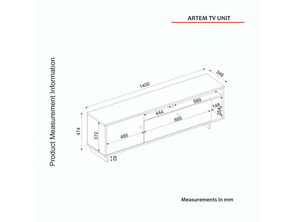 - Rozmery: 47.4 x 140 x 34.8 cm, ideálny pre moderné obývacie priestory.