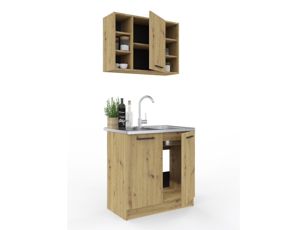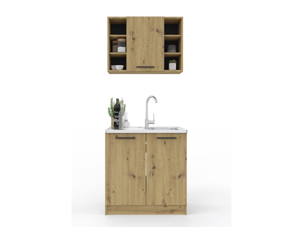 Skladá sa zo spodnej dvojdverovej skrinky, ktorá má rozmery (ŠxVxH) : 80 x 82 x 46 cm, je vhodná na drez a vrchnej skrinky, ktorá má rozmery (ŠxVxH) : 80 x 58 x 30 cm. Vrchná skrinka má 1 dvierka a po stranách regál. Drezová skrinka je bez pracovnej dosky.