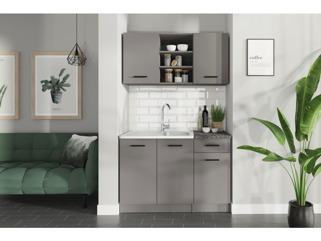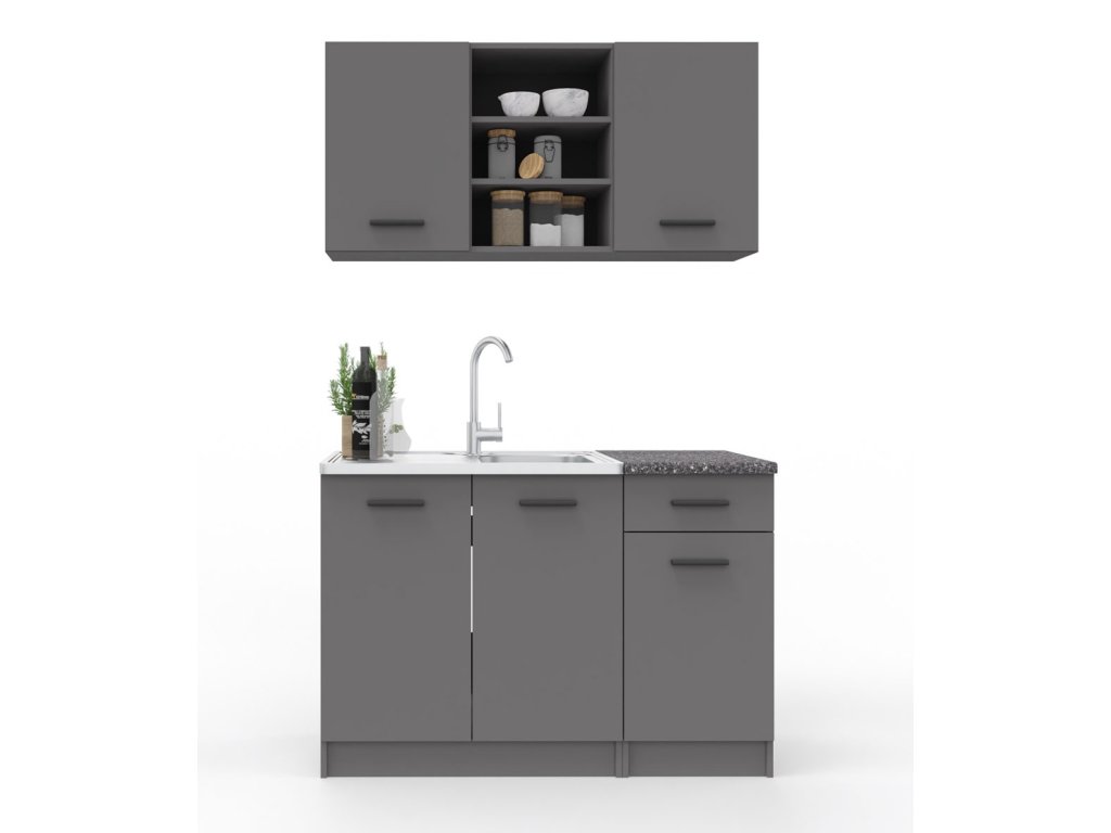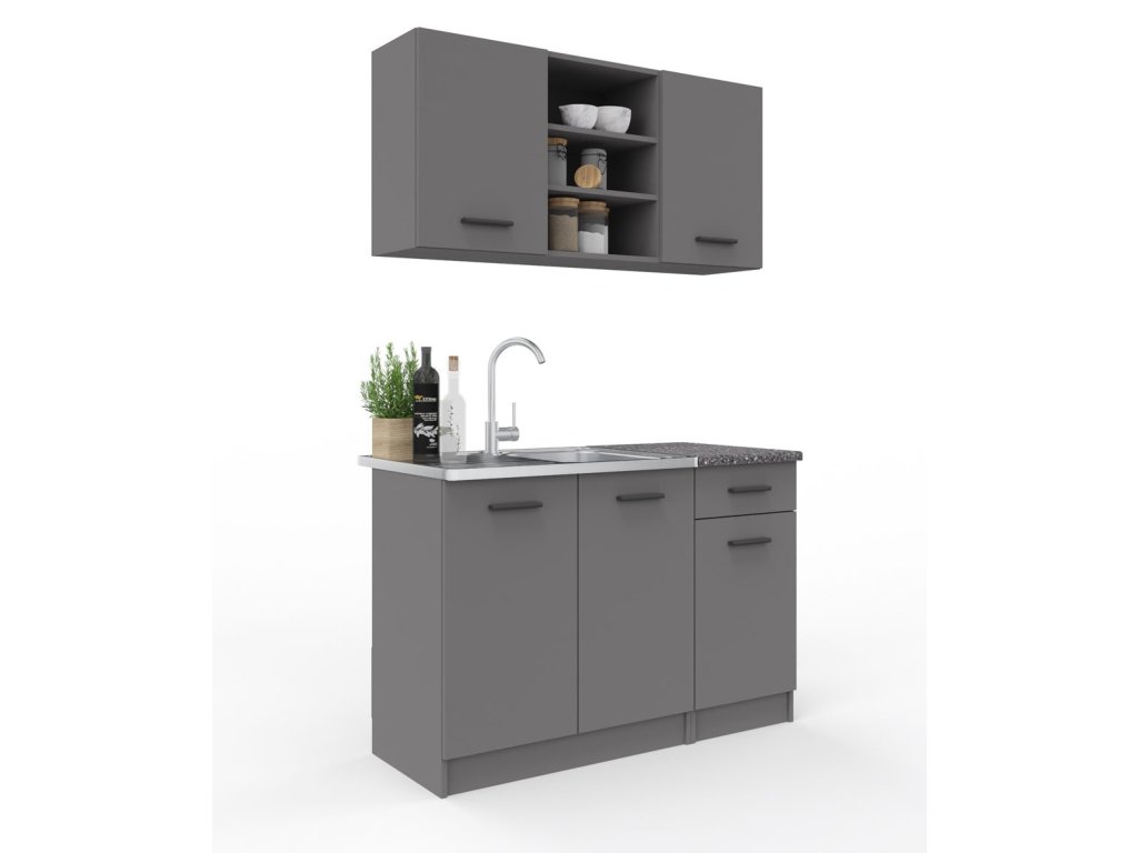 Jednoduchá kuchynská linka JANKA 120 má atraktívne prevedenie antracit. Materiál LTD je jednoduchý na údržbu.