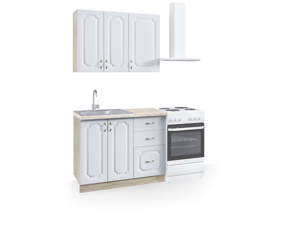 | Zostava obsahuje: | 1 ks horná dvojdverová skrinka 60 cm 1 ks horná jednodverová skrinka 40 cm 1 ks dolná dvojdverová drezová skrinka 60 cm 1 ks dolná skrinka zo zásuvkami 40 cm |