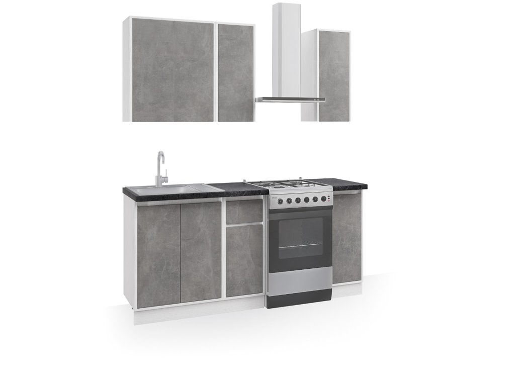 Kuchynská linka MATEO 120 predstavuje moderné a praktické riešenie do menších kuchynských priestorov. Vďaka kompaktným rozmerom a premyslenému usporiadaniu skriniek je vhodná do bytov, garsónok aj menších domov. Farebná kombinácia betón + biela pôsobí čisto, nadčasovo a ľahko sa kombinuje s rôznymi štýlmi interiéru.