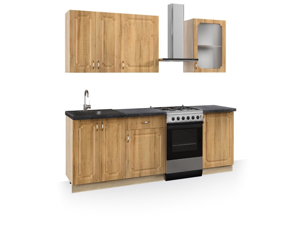 Kuchynská linka MADONNA 160 ponúka harmonické spojenie tradičného retro dizajnu a praktického usporiadania. Je ideálnou voľbou pre tých, ktorí hľadajú menšiu kuchyňu s osobitým štýlom, kvalitným spracovaním a príjemnou domácou atmosférou.