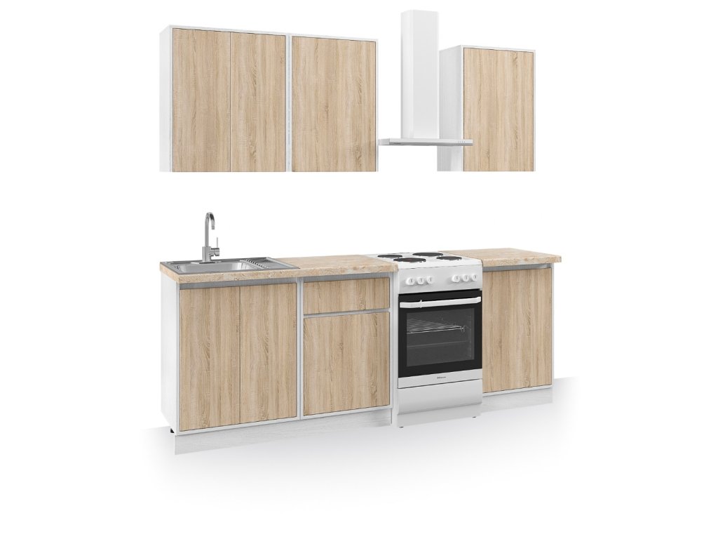 Kuchynská linka MATEO 160 je praktickým a moderným riešením pre menšie až stredne veľké kuchynské priestory, kde je kladený dôraz na funkčnosť a čistý dizajn. Vďaka premyslenému rozloženiu skriniek ponúka dostatok úložného priestoru a pohodlné používanie pri každodennom varení. Kombinácia farieb dub Sonoma + biela pôsobí svetlo, prirodzene a nadčasovo.