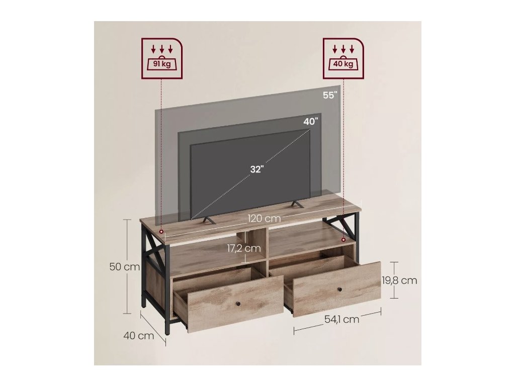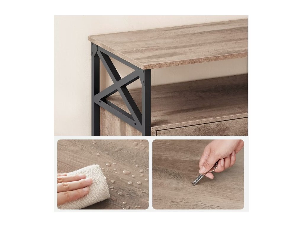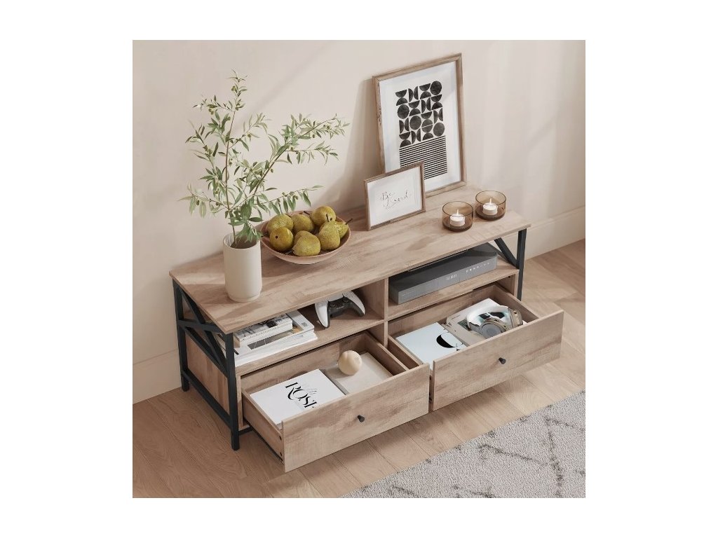 Oceľ znamená stabilitu, drevotrieska robustnosť. Vďaka tejto kombinácii TV skrinka unesie až 91 kg a bude vás sprevádzať niekoľko rokov.
