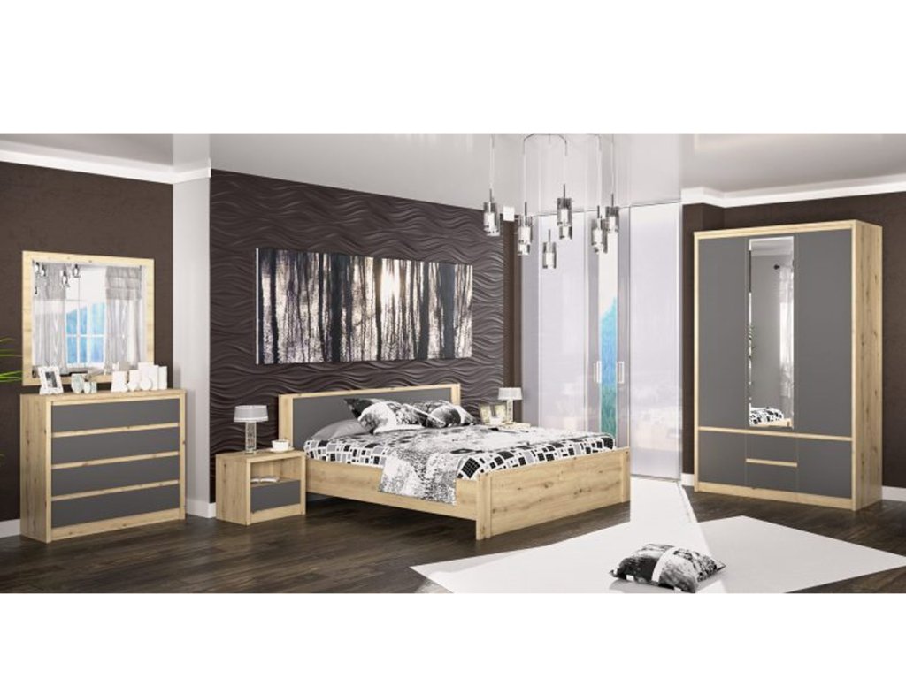 DOMICA posteľ patrí medzi manželské postele. Zaujímavosťou tohto nábytku je vizuál štruktúry dreva, ktorý je viditeľný na doskách vo farbe artisan. Dvojfarebné prevedenie zvýrazňuje jej vzhľad.