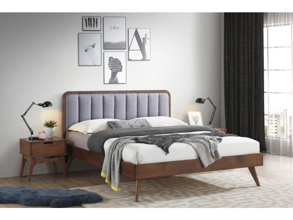 Výnimočná posteľ PENEBEL v škandinávskom štýle je výnimočným nábytkom. Vďaka svojim vysokým nožičkám pôsobí vzdušne. Vyvýšené čelo postele je prakticky čalúnené látkou v sivej farbe. Zabezpečí ochranu steny pred oderom a Vám praktickú opierku chrbta a hlavy. Okrem toho je efektným dizajnovým prvkom postele. Vďaka kombinácii čalúnenia s drevom, je posteľ celistvá a štýlovo prepojená. Konštrukcia postele je z masívneho orechového dreva vo farbe tmavý orech. Súčasťou postele je rošt. Matrac je potrebné si doobjednať. Odporúčame rozmer 160 x 200 cm, resp. 2 ks 80 x 200 cm. Rozmery (š/v/h): 165,5 x 113,5/39,5 x 205 cm. Dodávame v demonte.Dodatočné parametre