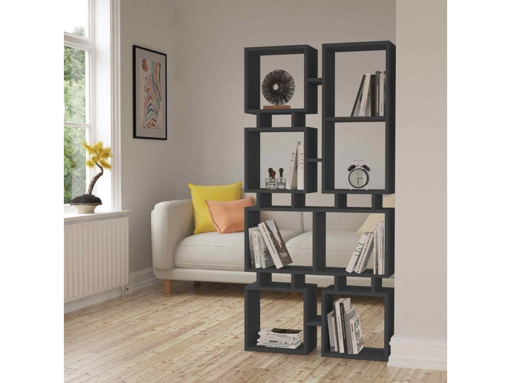 Regál MAK: Elegantný antracitový doplnok pre vašu obývaciu izbu