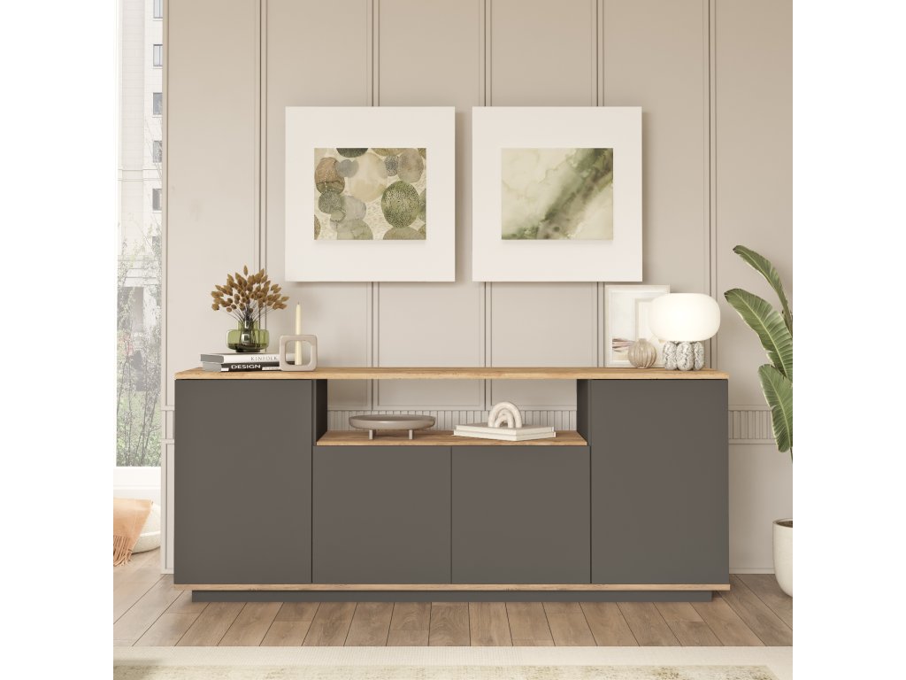 Moderná komoda 4-dverová FREY 15, borovica/antracit