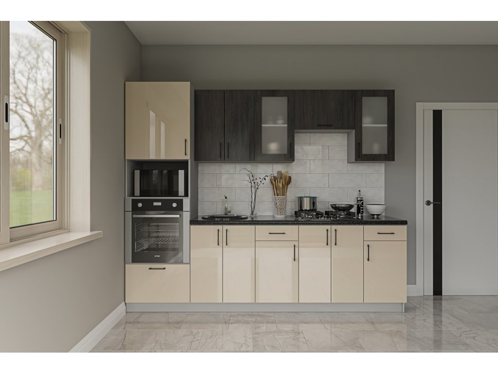 Moderná kuchyňa 280 GLAND 2, slonová kosť / anglický dub
