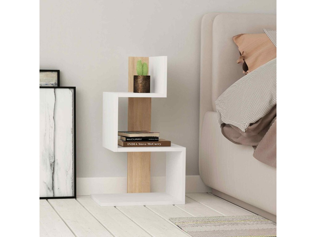 Moderný, dizajnový odkladací stolík ADRIEL, biely/dub