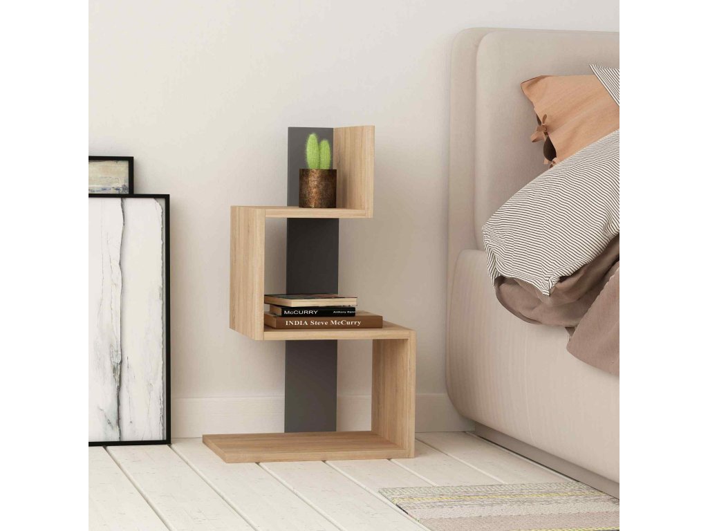 Moderný, dizajnový odkladací stolík ADRIEL, dub/antracit