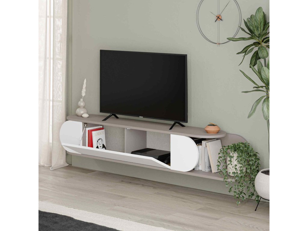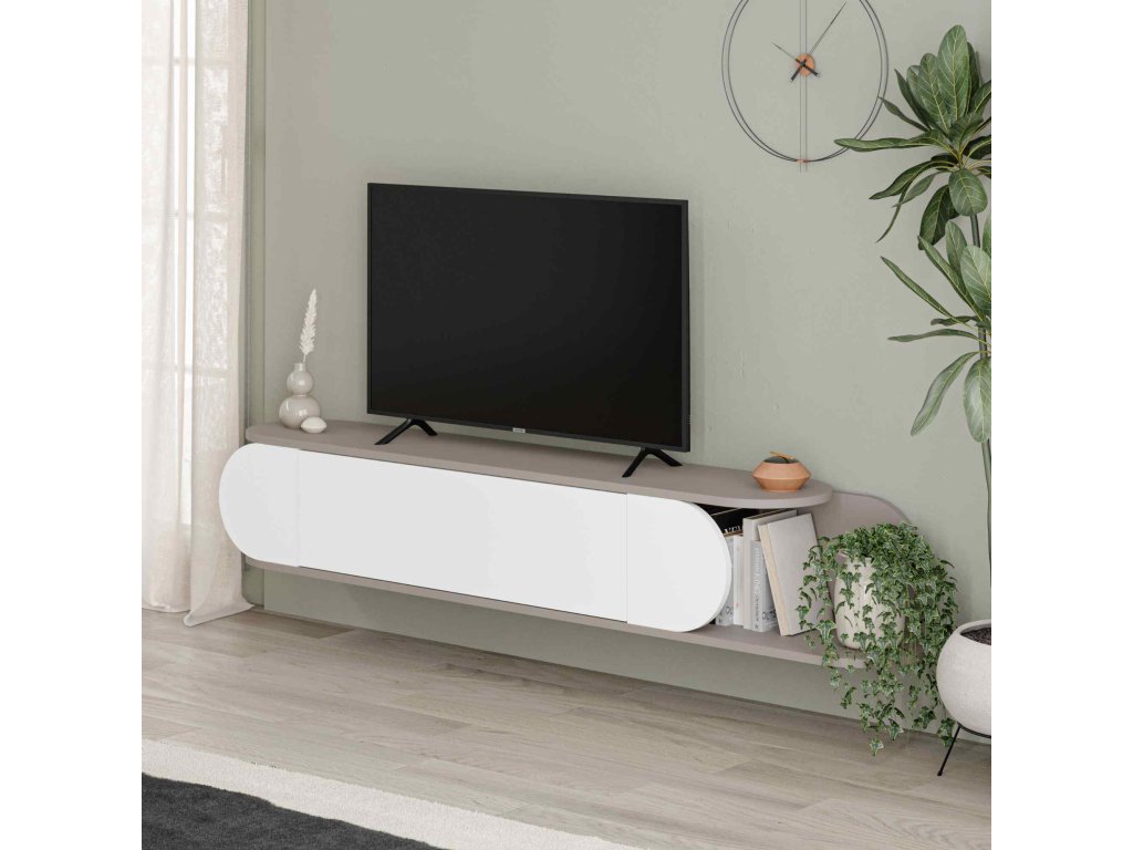 Moderný televízny stolík MELGA, svetlá mocca/biela