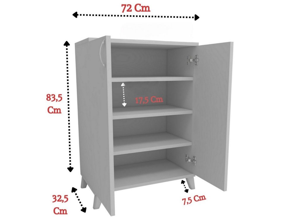 Komoda je dvojdverová, vo vnútri sa nachádzajú police na uloženie vášho oblečenia a podobne.