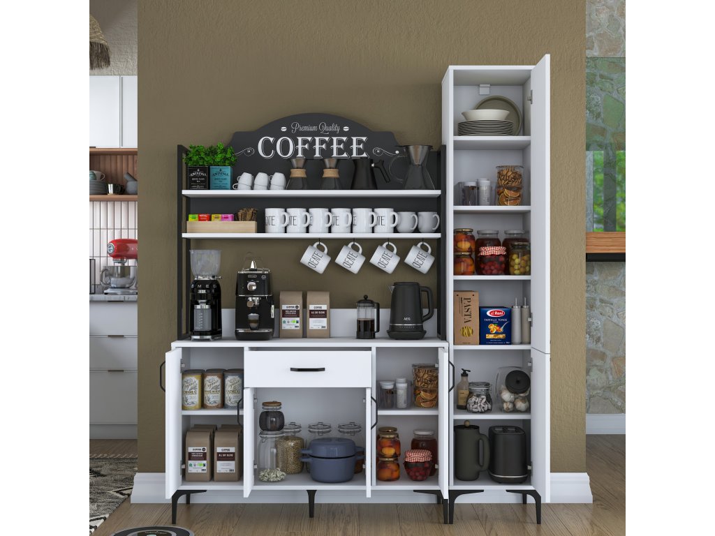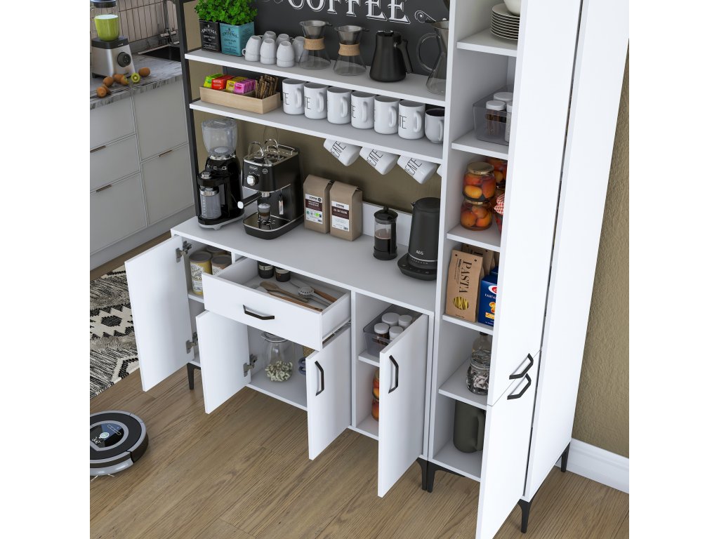 Policová skriňa CAPTAIN je navrhnutá pre modernú kuchyňu, kde kombinuje štýl a praktickosť. Jej čistý biely dizajn v škandinávskom štýle prináša do interiéru eleganciu a zároveň ponúka dostatok úložného priestoru pre každodenné potreby.