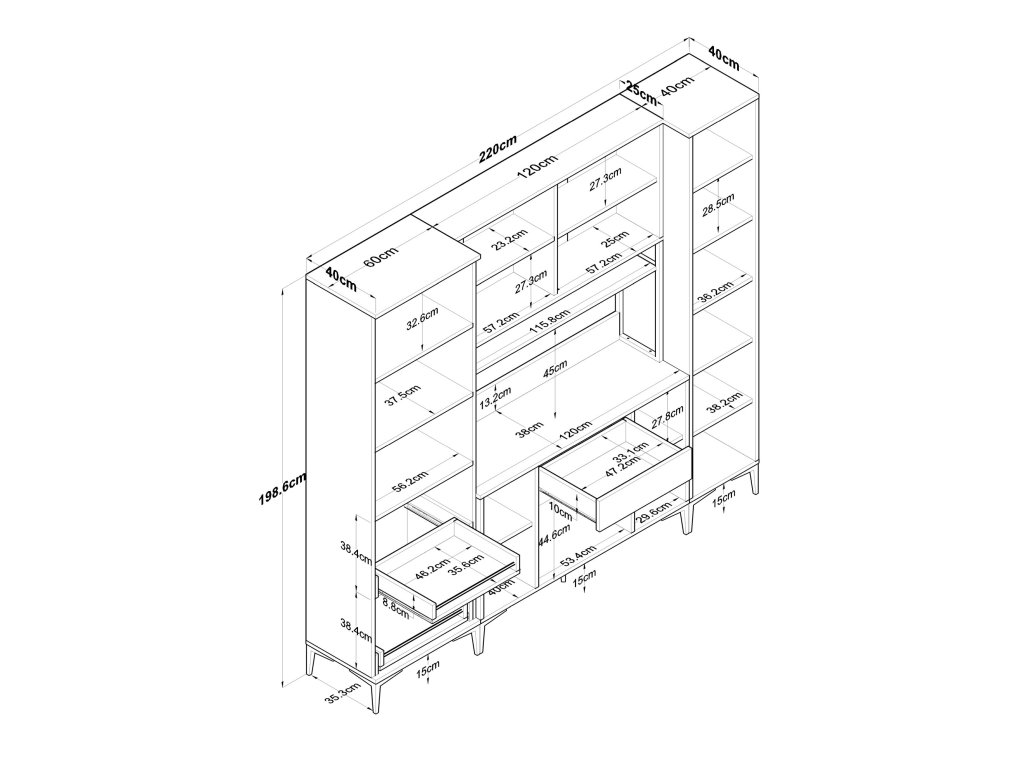 - Rozmer: 198.6 x 220 x 40 cm