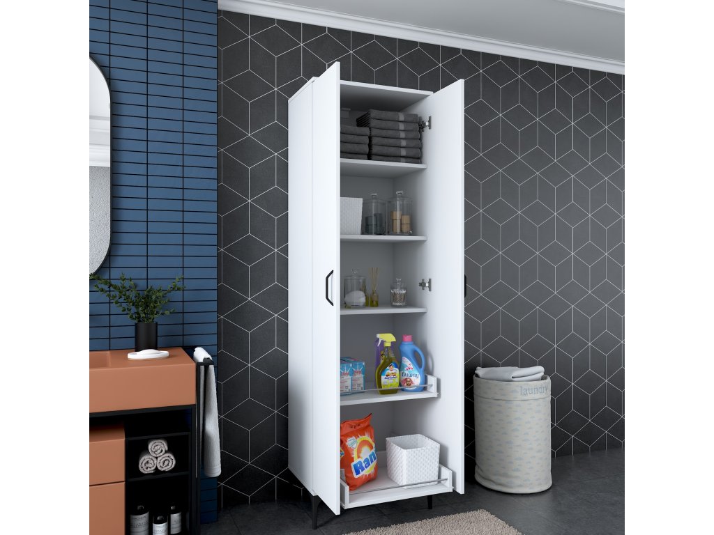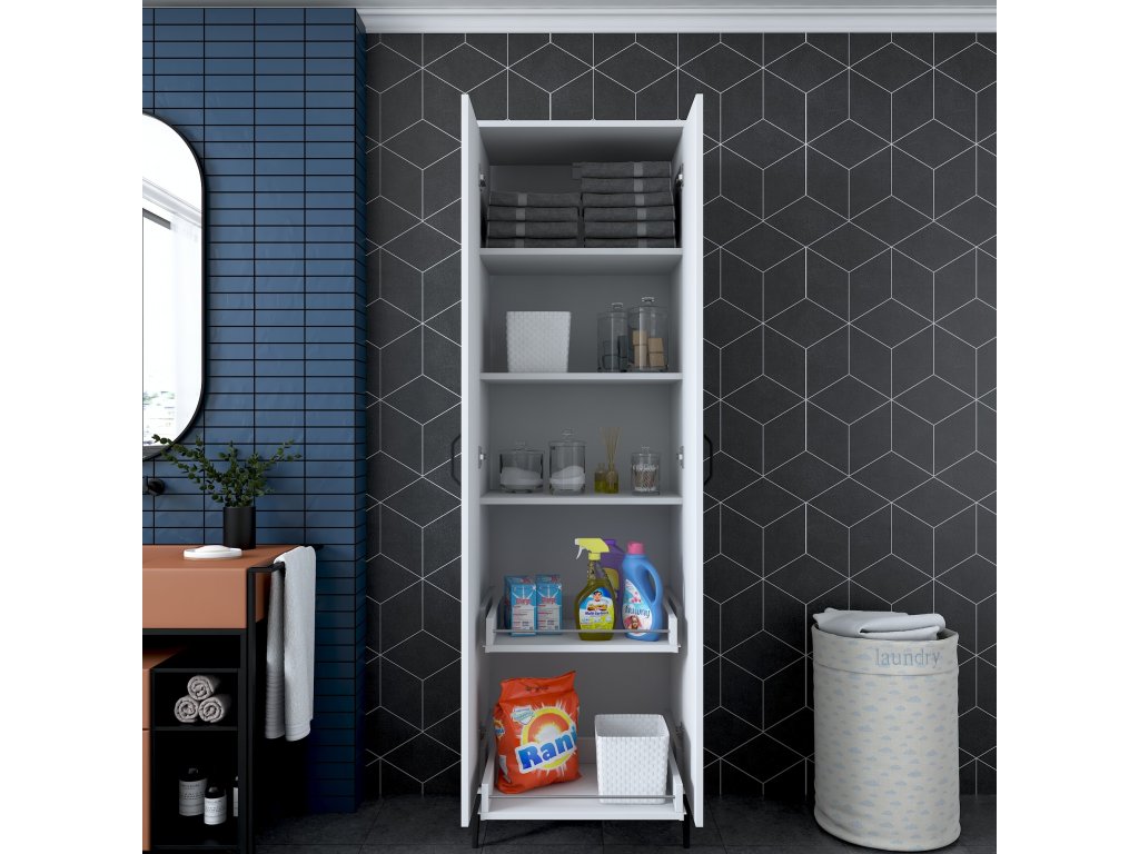 Policová skriňa TOMMY je ideálnym riešením pre efektívnu organizáciu vo vašej kúpeľni. Jej moderný škandinávsky dizajn v čistej bielej farbe dodá priestoru eleganciu a praktickosť, zatiaľ čo vysoký a viacúčelový vzhľad umožňuje maximálne využitie priestoru.