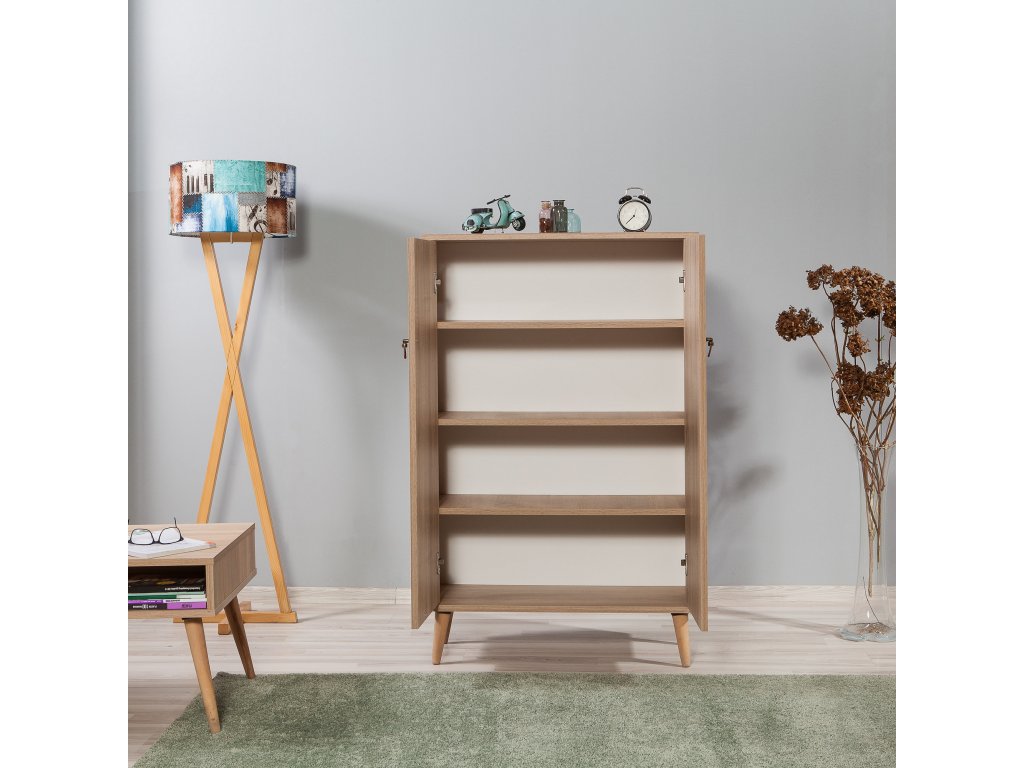 Skrinka MICRO ponúka praktický úložný priestor za dvoma plnými dvierkami, ktorý oceníte pri organizácii kníh, riadu či iných predmetov. Kovové a povrazové úchytky dodávajú nábytku jedinečný a moderný vzhľad, zatiaľ čo nohy z hrabového dreva zaisťujú stabilitu a estetický dojem.