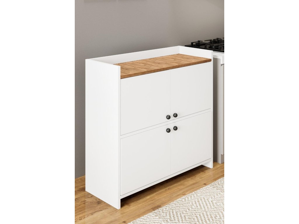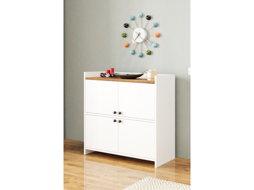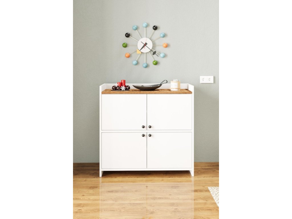 Praktická viacúčelová skrinka so 4 dverami a 4 policami biela/borovica.