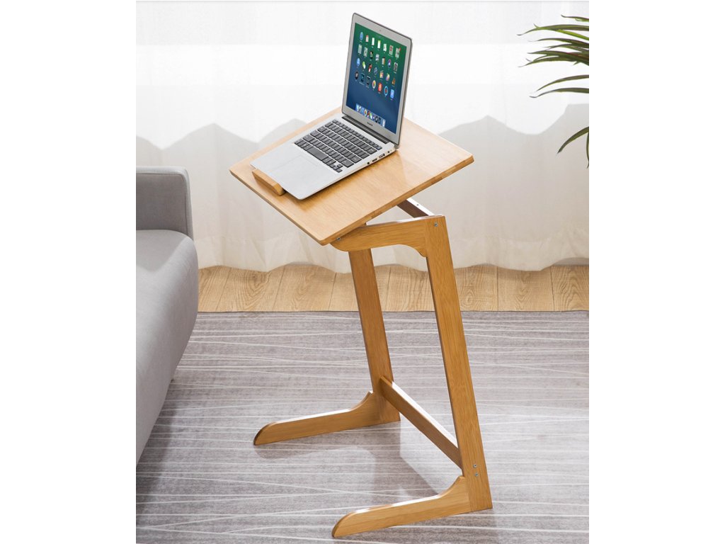 Vrchnú dosku stolíka môžete pomocou stojana jednoducho naklopiť, pre pohodlnejšie používanie. Zabudovaná lišta zabraňuje sklzu notebooku.