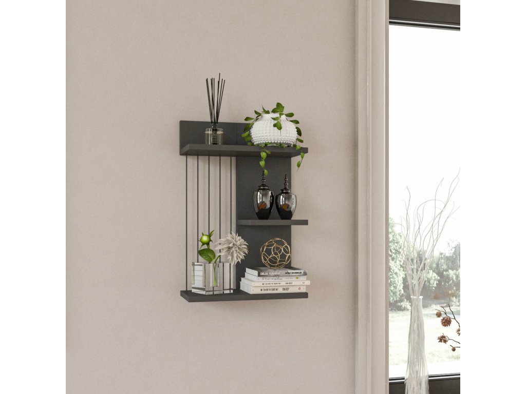 Vďaka mnohým policam poskytuje táto nástenná polica dostatok priestoru na vystavenie vašich obľúbených kníh, dekoratívnych predmetov a ďalších vecí. Jej elegantný dizajn a antracitová farba z nej robí perfektný doplnok do akéhokoľvek moderného alebo industriálneho interiéru. Jeho robustná konštrukcia zaisťuje bezpečné uloženie vašich vecí a poskytuje vám kľud. cm