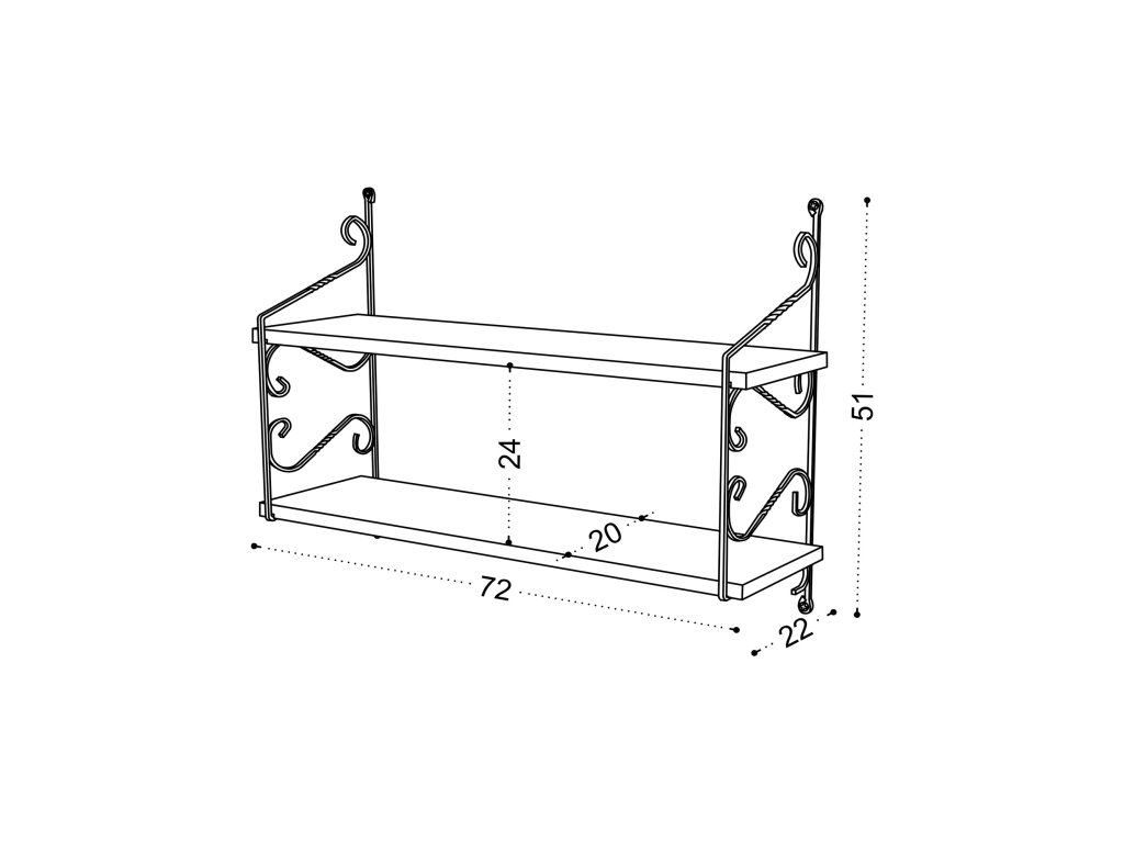 Táto nástenná polica s mnohými policami poskytuje dostatok priestoru na vystavenie vašich obľúbených kníh, fotorámikov alebo dekoratívnych predmetov. Jeho veľkorysé rozmery 72 cm na šírku, 51 cm na výšku a 20 cm na hĺbku ponúkajú dostatok priestoru na usporiadanie a vystavenie vašich vecí. Dodáva sa kompletne zmontovaná, takže si môžete užívať jej krásu a funkčnosť ihneď po vybalení.