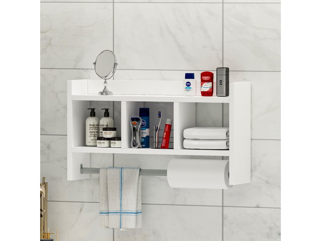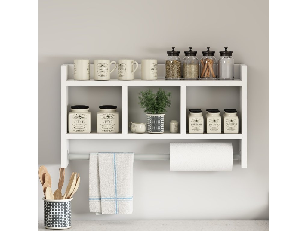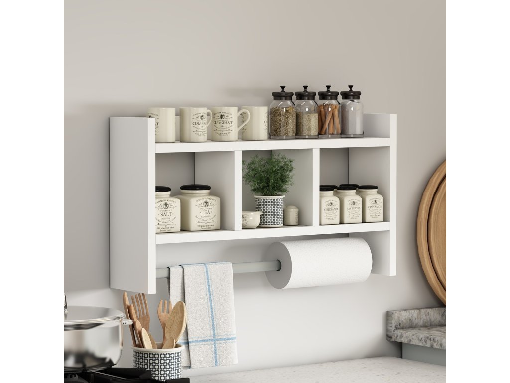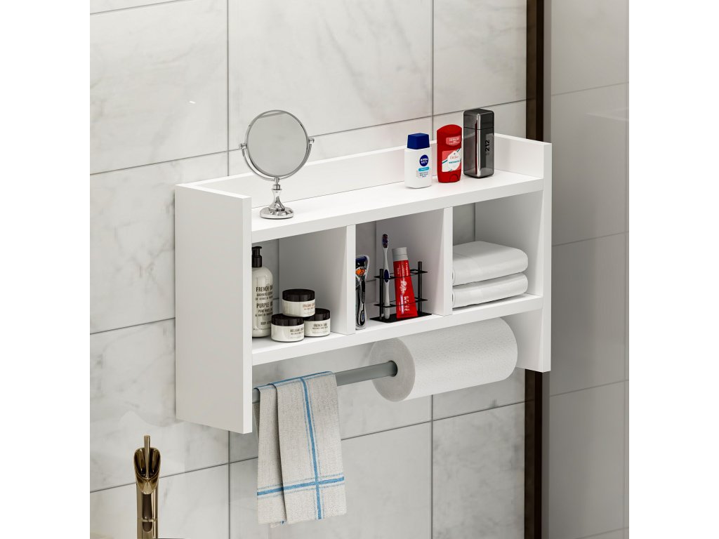 Nástenná polica s držiakom na utierky BUGAT, biela