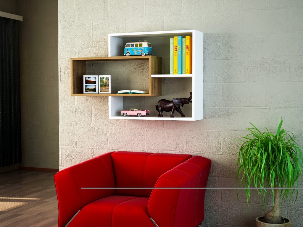 Nástenná polica SAMANTHA, biela / orech