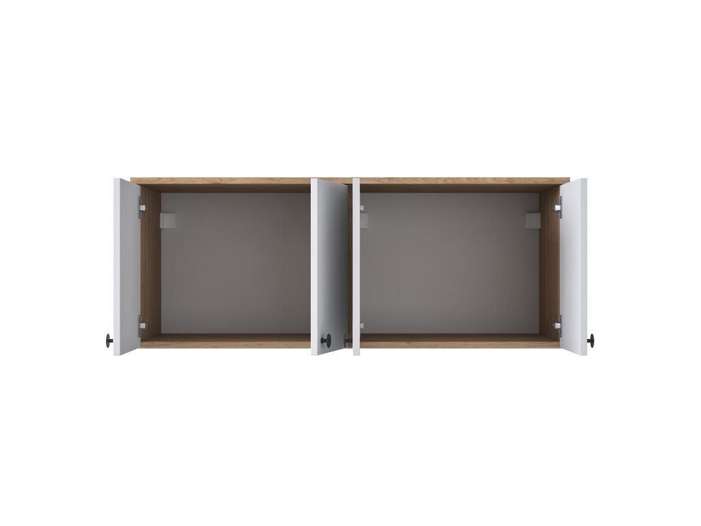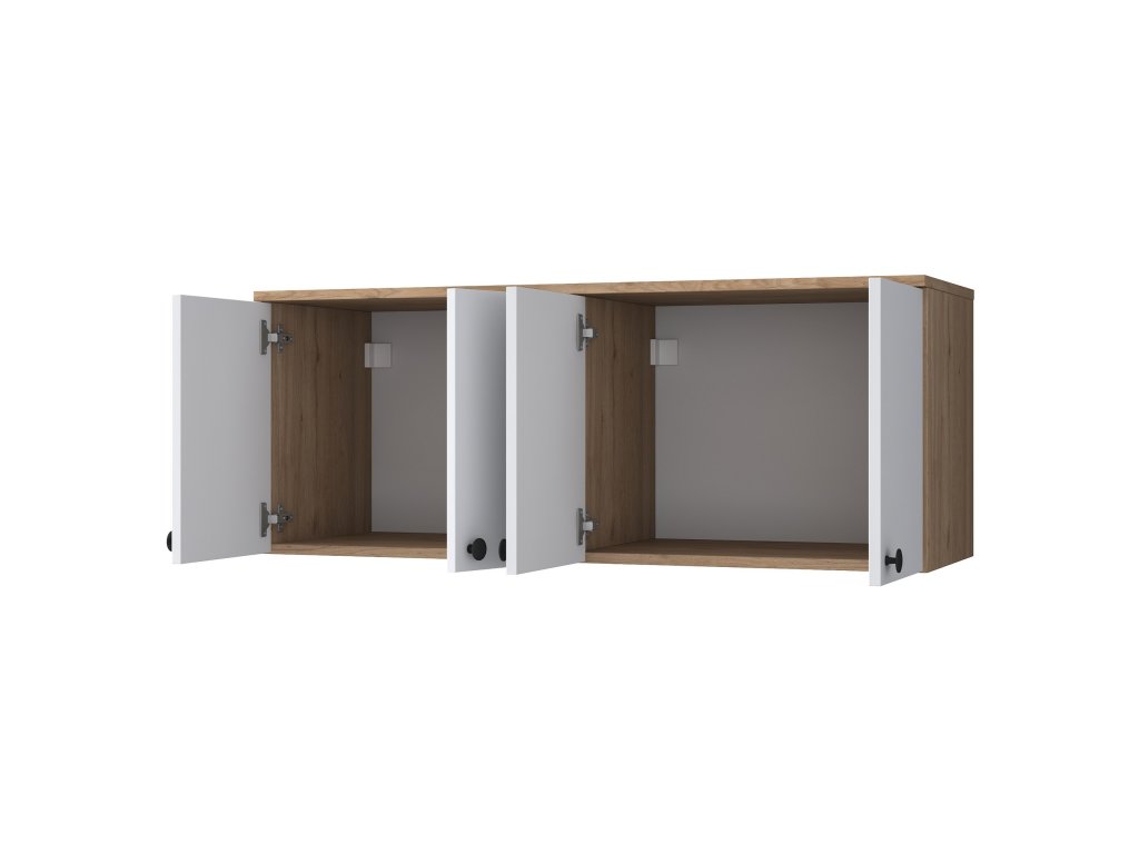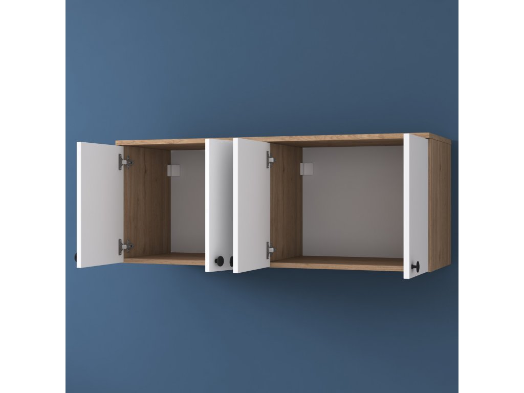 Závesná skrinka CAVE kombinuje elegantný dizajn a praktické využitie. Je ideálnym riešením pre organizáciu a uloženie vecí v obývacej izbe alebo spálni. Spojenie bielej farby a dekoru orecha dodáva interiéru štýl a útulnosť. Skrinka s plnými dvierkami zaisťuje diskrétnosť a zároveň vytvára čistý a elegantný vzhľad.