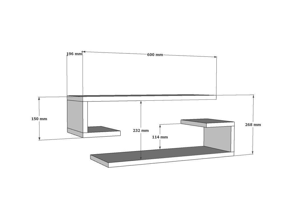 S veľkorysými rozmermi 60 cm na šírku, 15 cm na výšku a 19,6 cm na hĺbku ponúka naša nástenná polica dostatok priestoru na vystavenie vašich obľúbených dekoračných predmetov, kníh alebo zberateľských predmetov. Jej elegantný a minimalistický dizajn bez námahy doplní akýkoľvek štýl interiéru a dodá vášmu priestoru nádych sofistikovanosti.