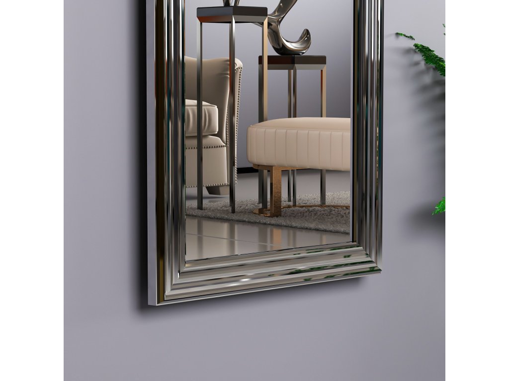Zrkadlo LUMINO so svojim úzkym a dlhým dizajnom je ideálne do predsiene, kde uľahčí každodennú kontrolu vzhľadu, alebo do obývacej izby, kde opticky zväčší priestor a pridá interiéru viac svetla. Strieborný rám podčiarkuje jeho luxusný vzhľad a ľahko zapadne do moderných aj klasických interiérov.