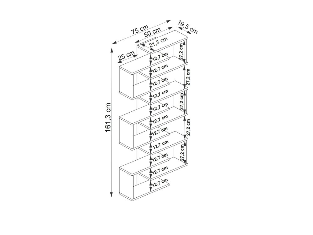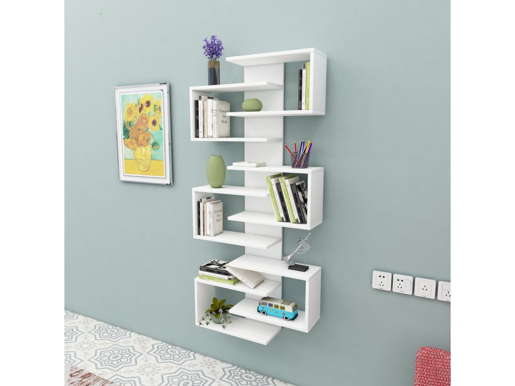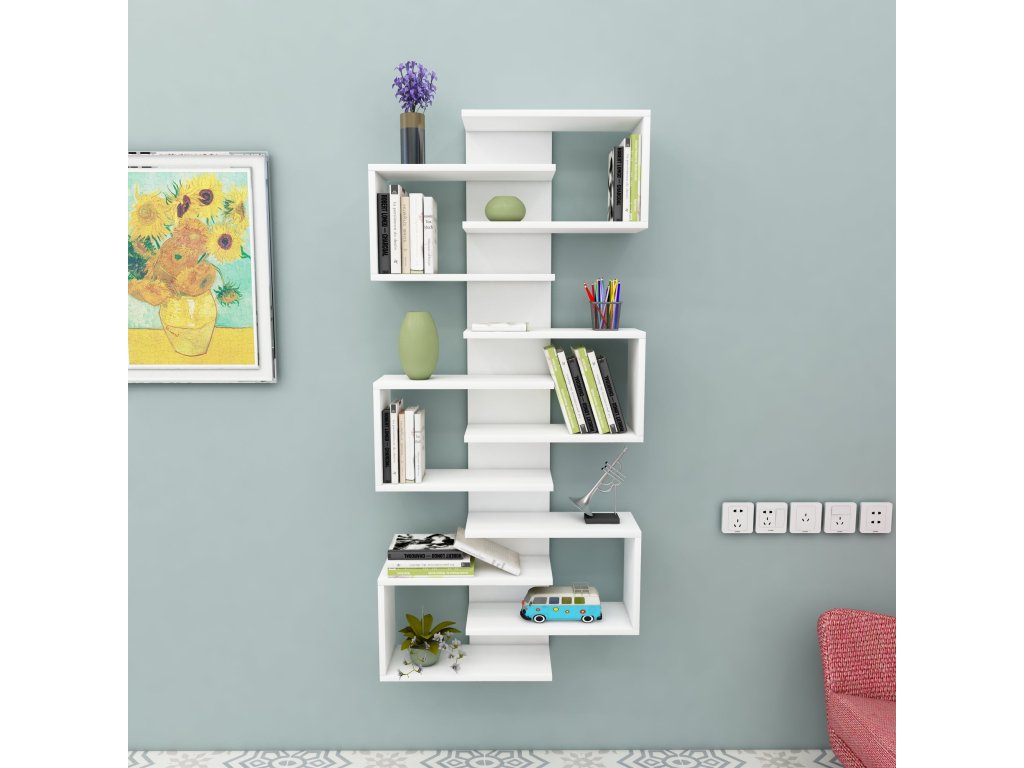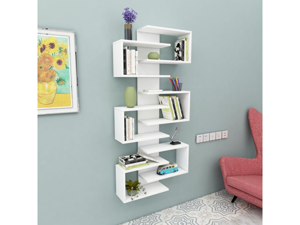Závesný regál STAR je dokonalým spojením moderného dizajnu a funkčnosti. Vďaka svojmu obdĺžnikovému tvaru a desiatim priestranným policam ponúka dostatok miesta pre vaše knihy, dekorácie alebo iné doplnky. Elegantné prevedenie a možnosť pripevnenia na stenu zaisťujú bezpečnosť a štýlový vzhľad vášho interiéru.
