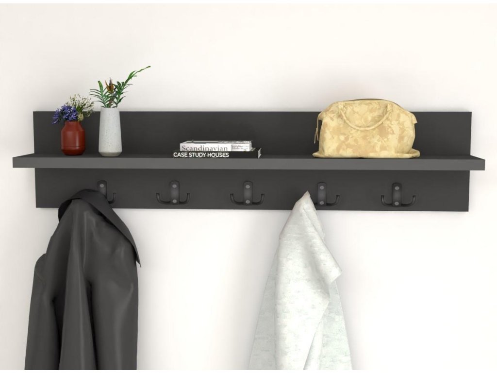 Je vyrobený z kvalitnej LTD dosky, ktorá je nenáročná na údržbu. Hrúbka 18 mm. Disponuje piatimi háčikmi na uloženie kabátov či búnd.