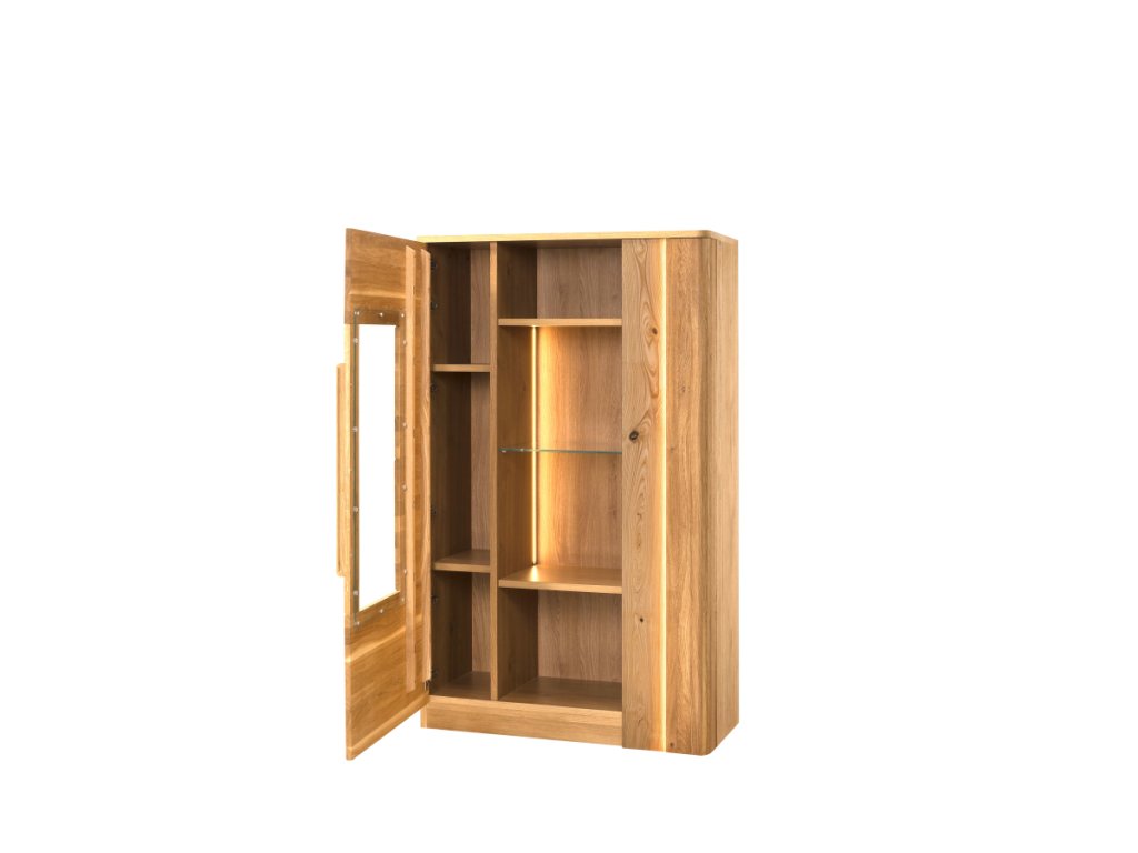 Vitrína je jednodverová, presklená. Farebné prevedenie: dub Natura.