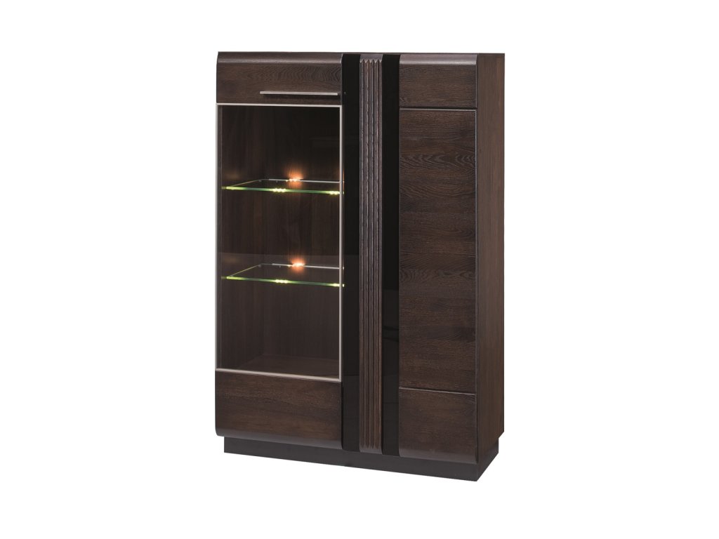 Ponúkame Vám exkluzívnu kolekciu nábytku PORTORIKO, z ktorej si dokážete zariadiť elegantnú spálňu, jedáleň či obývacia izbu. Jej súčasťou je štýlová vysoká vitrína PORTORIKO 15. Dizajnové prevedenie nábytku zvýrazňuje efektné 3D riflovanie na dekoračných lištách, ktoré je kombinované s elegantným čiernym sklom. Súčasťou ľavých dverí je elegantné presklenie. Za dverami nájdete viacero poličiek - 2 z nich sú zo skla. Ku skleneným poličkám je možné dokúpiť si elegantné LED osvetlenie, ktorý zvýrazní detaily tohto unikátneho nábytku. Vitrína je vyrobená z vysoko kvalitných materiálov. Korpus je z prírodnej dýhy, predné časti nábytku sú z dubového masívneho dreva. Úchytky sú kovové. Rozmery (š/v/h): 95 x 145 x 42 cm. Farba: dub čokoládový/čierne sklo. Luxusný sektorový nábytok PORTORIKO sa stane ozdobou Vašej domácnosti. Pre zariadenie štýlovej spálne, obývacej izby alebo jedálne si môžete vybrať z viacerých samostatných elementov PORTORIKO. V našej ponuke nájdete aj farebné prevedenie dub antický. Dodávame zmontované.