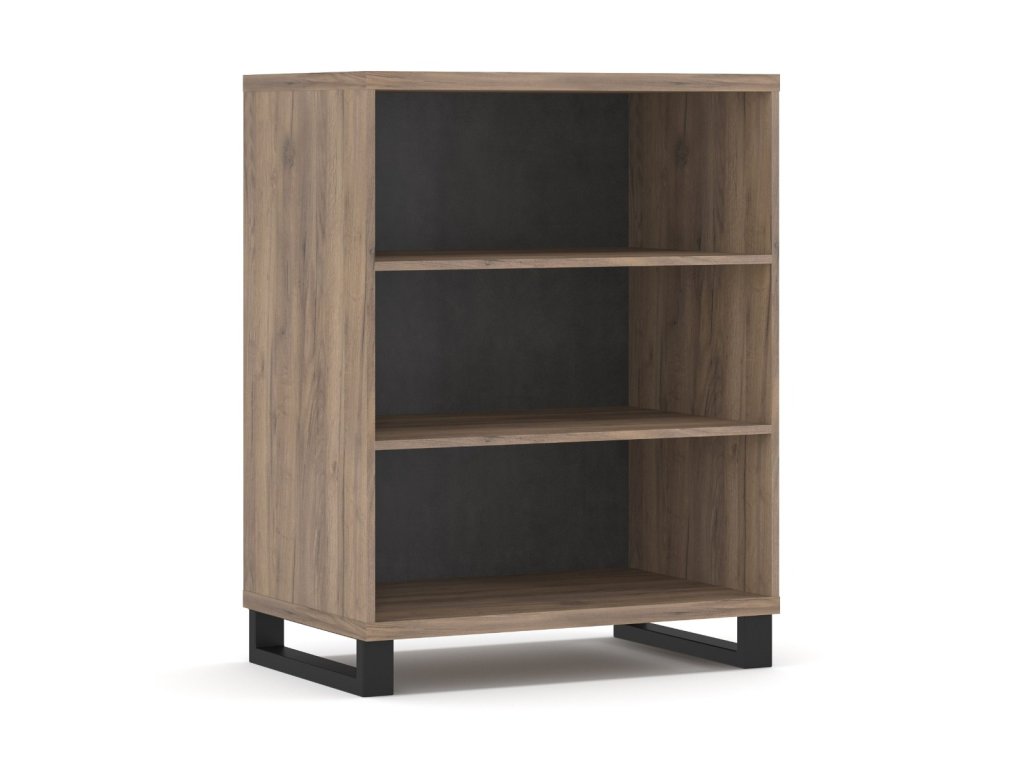Praktický regál má vo vnútri dve police, moderný dizajn dopĺňajú čierne kovové nohy.