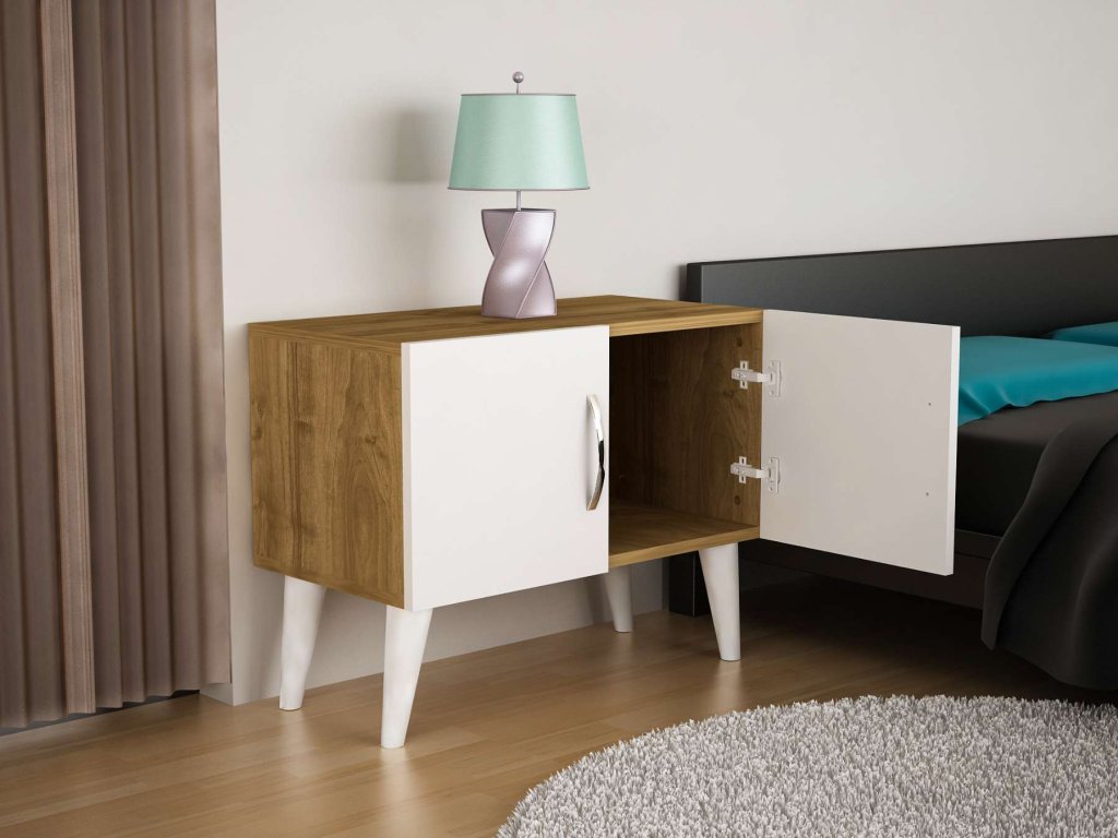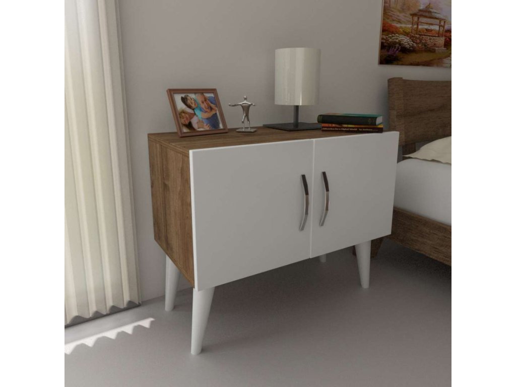 Nočný stolík FELLINY 2D je vyrobený z kvalitného LTD materiálu s hrúbkou 18 mm, čo zaisťuje jeho dlhú životnosť a odolnosť. Elegantná kombinácia bielej farby a orecha prinesie do vášho interiéru moderný a štýlový vzhľad. S rozmermi 70.3 x 55 x 37.1 cm poskytuje dostatok úložného priestoru vďaka dvom praktickým dvierkam.