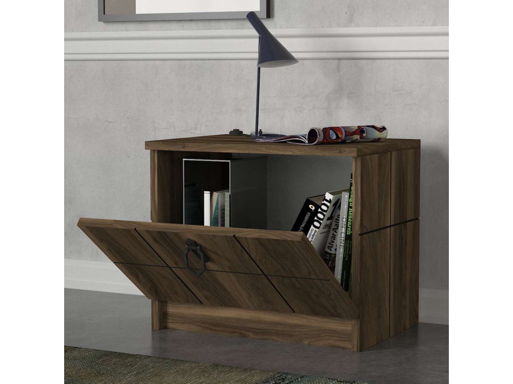 Nočný stolík LUST N sa vyznačuje krásnym orechovým prevedením, ktoré ľahko zapadne do akéhokoľvek štýlu spálne. Stolík je vybavený skrinkou s jednými dvierkami, ktorá poskytuje dostatok priestoru na uloženie vašich osobných vecí, kníh alebo ďalších nevyhnutností.