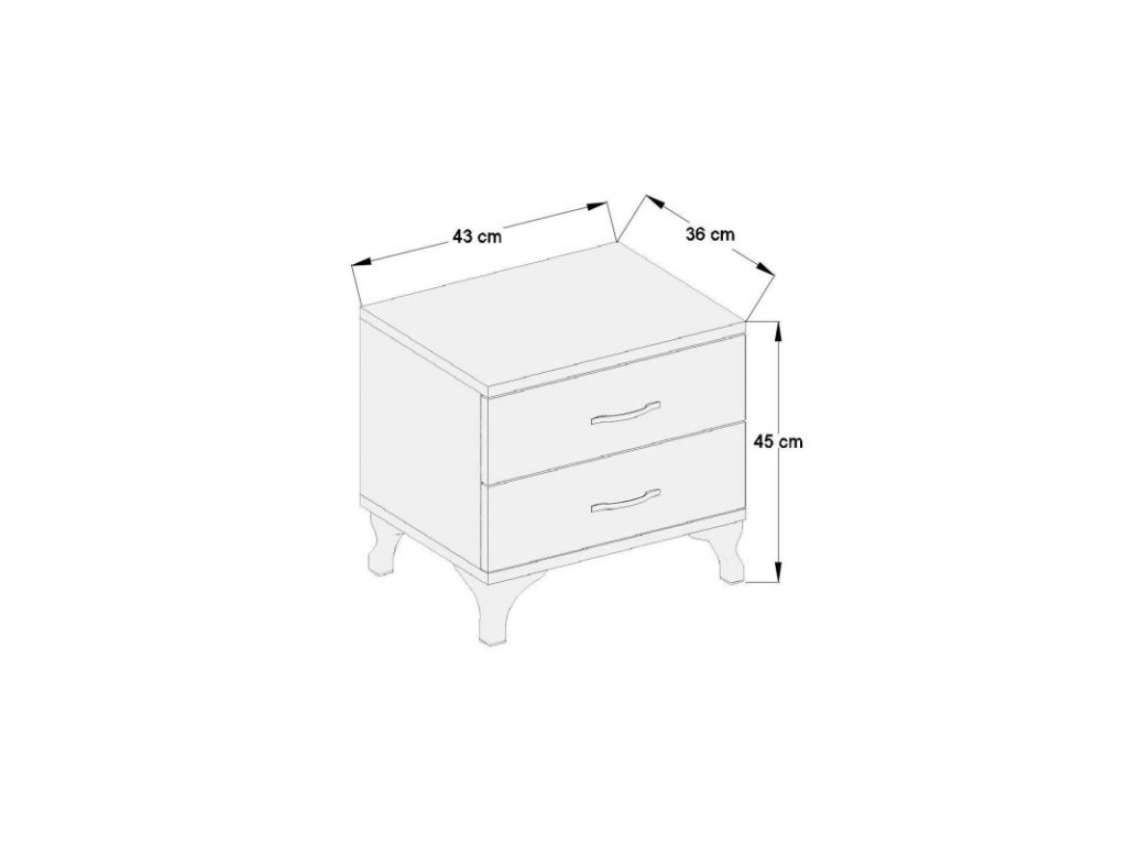 Nočný stolík je vybavený 2 priestrannými šuplíkmi, ktoré poskytujú dostatok úložného priestoru pre vaše osobné veci. Stojí na elegantných nožičkách, čo uľahčuje údržbu podlahy pod ním. Vyrobený z kvalitnej drevotriesky potiahnutej melamínom, stolík ENGLAND zaisťuje dlhú životnosť a odolnosť.