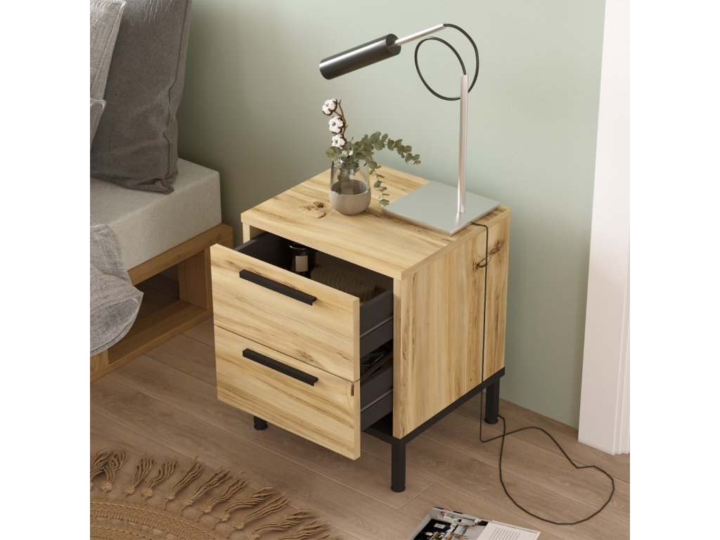 Nočný stolík na nožičkách LEVY 24, dub Left/čierna