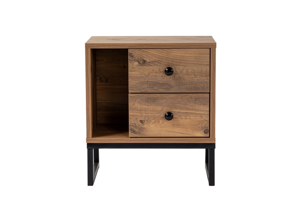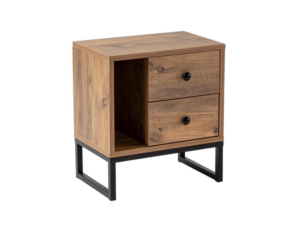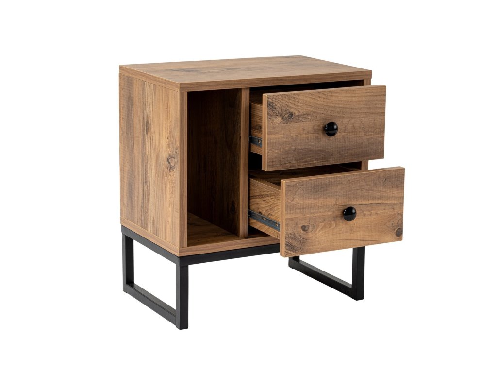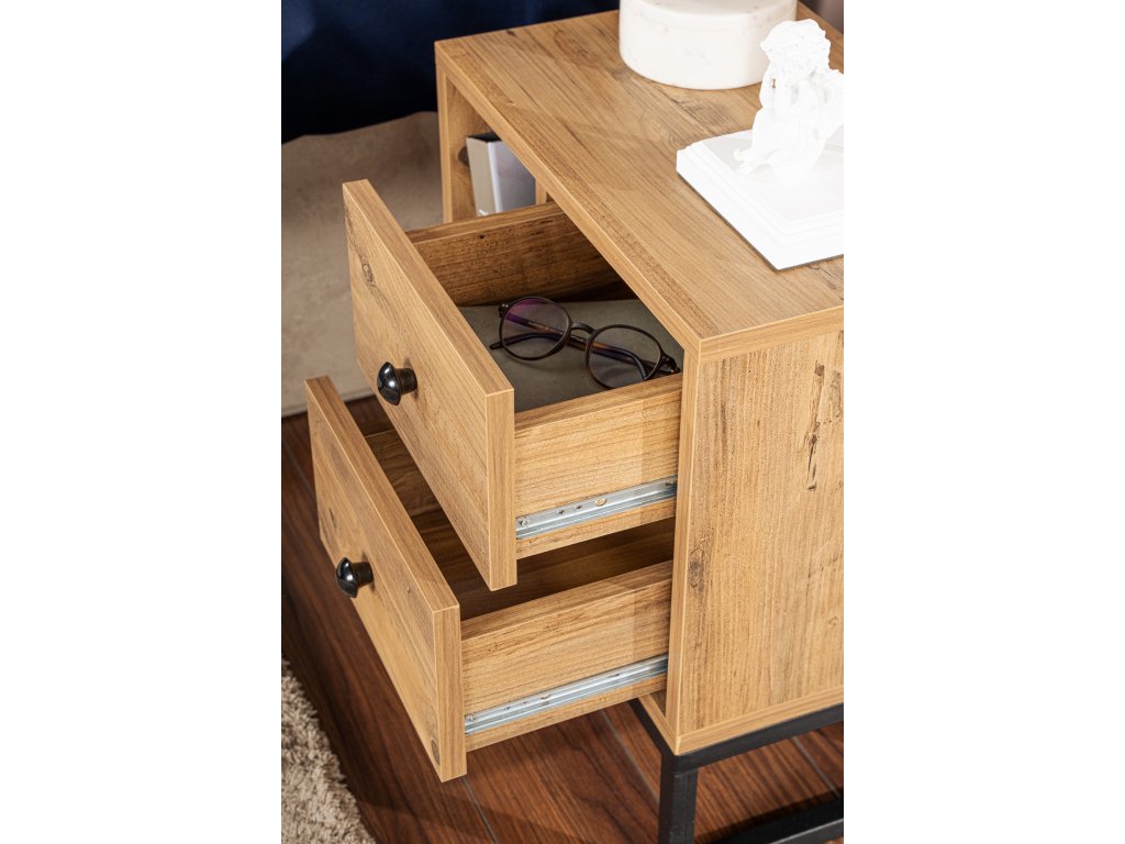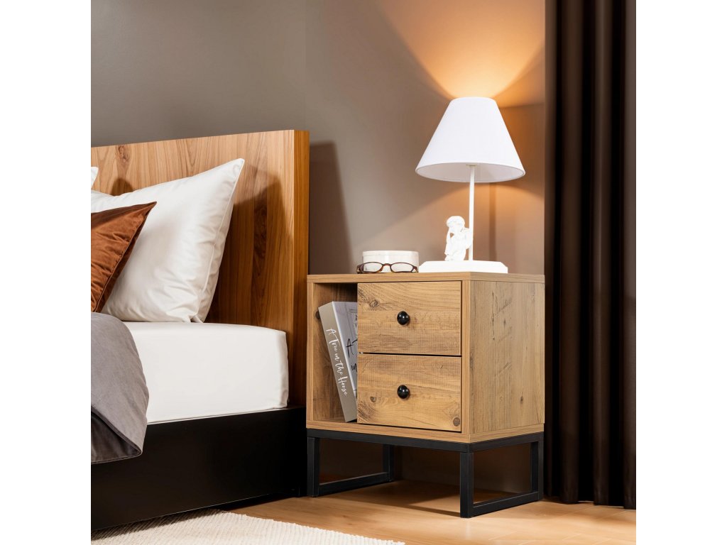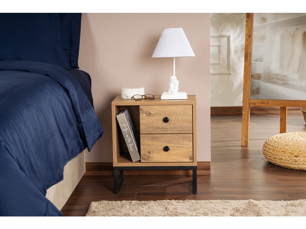 Tento nočný stolík je vyrobený z 18 mm hrubej melamínovo potiahnutej drevotriesky a je navrhnutý tak, aby vydržal. Robustné kovové nohy poskytujú stabilitu a oporu a zaisťujú tak bezpečie vašich vecí. Farebná kombinácia atlantskej borovice a čiernej dodá vašej spálni nádych tepla a sofistikovanosti. stabilitu