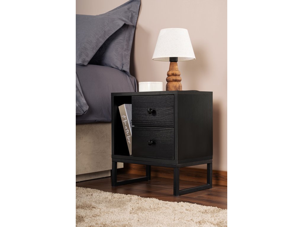 Nočný stolík na nožičkách QUEEN, čierne drevo/čierna