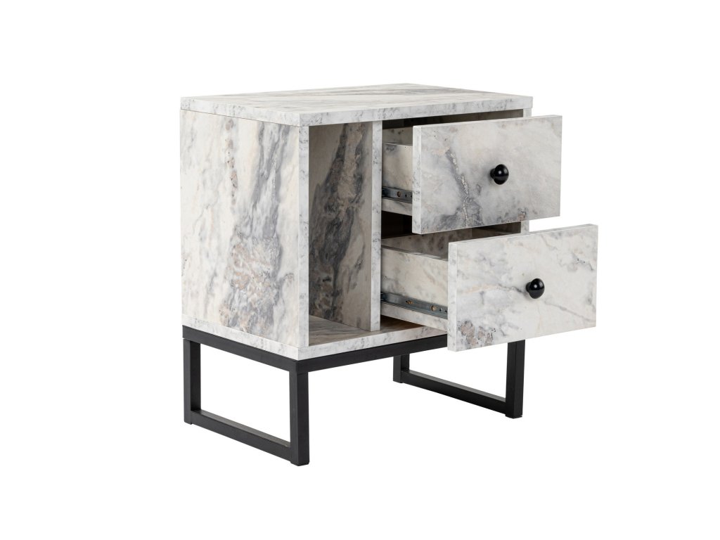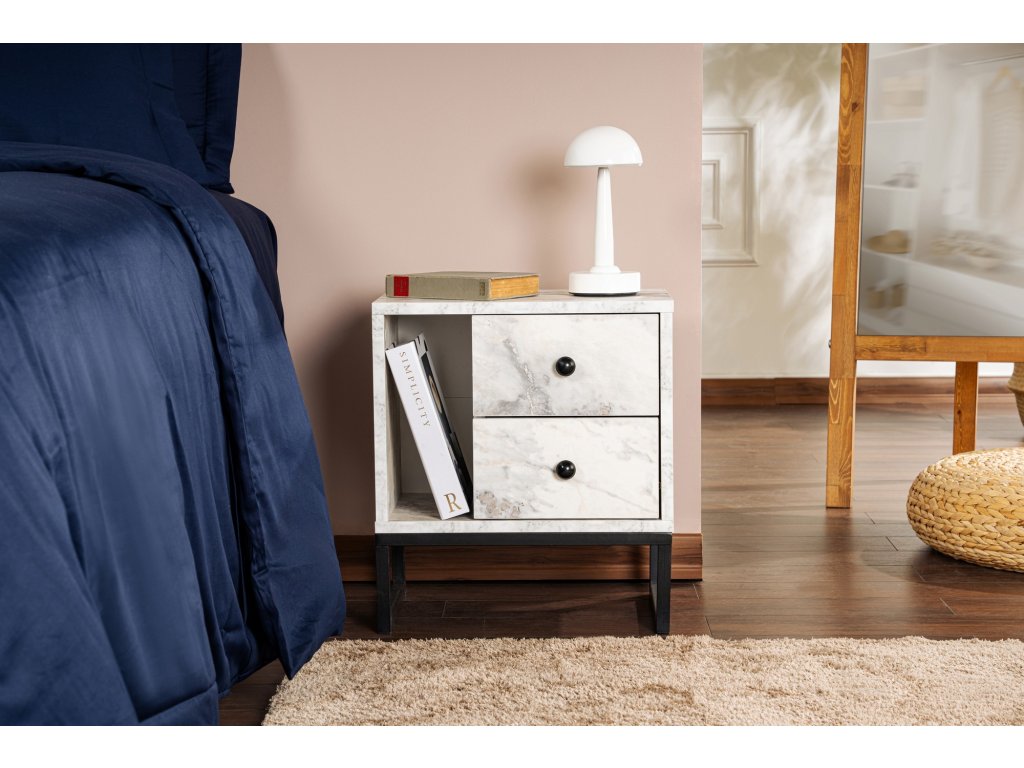 Dodajte svojej spálni nádych lesku s týmto elegantným a šik nočným stolíkom. Unikátna kombinácia farieb frézie a mramoru v čiernej farbe okamžite pozdvihne vzhľad vášho priestoru a dodá mu luxusnejší a príjemnejší vzhľad.