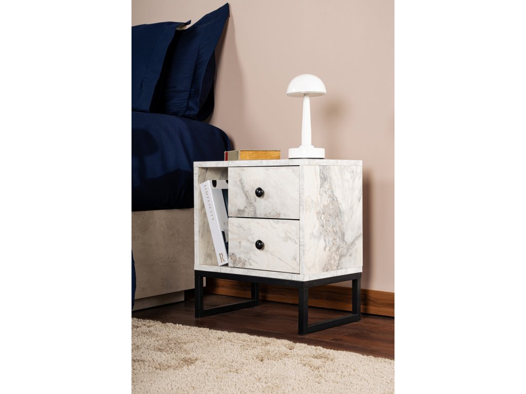 Nočný stolík na nožičkách QUEEN, freesia mramor / čierna