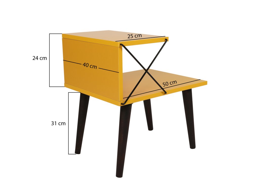 Žiarivá žltá farba tohto nočného stolíka dodá vašej spálni osobitý nádych a stane sa z neho výrazný kus nábytku. Moderný a originálny dizajn nočného stolíka vám umožní popustiť uzdu vašej kreativite a vyjadriť váš jedinečný štýl. Buk